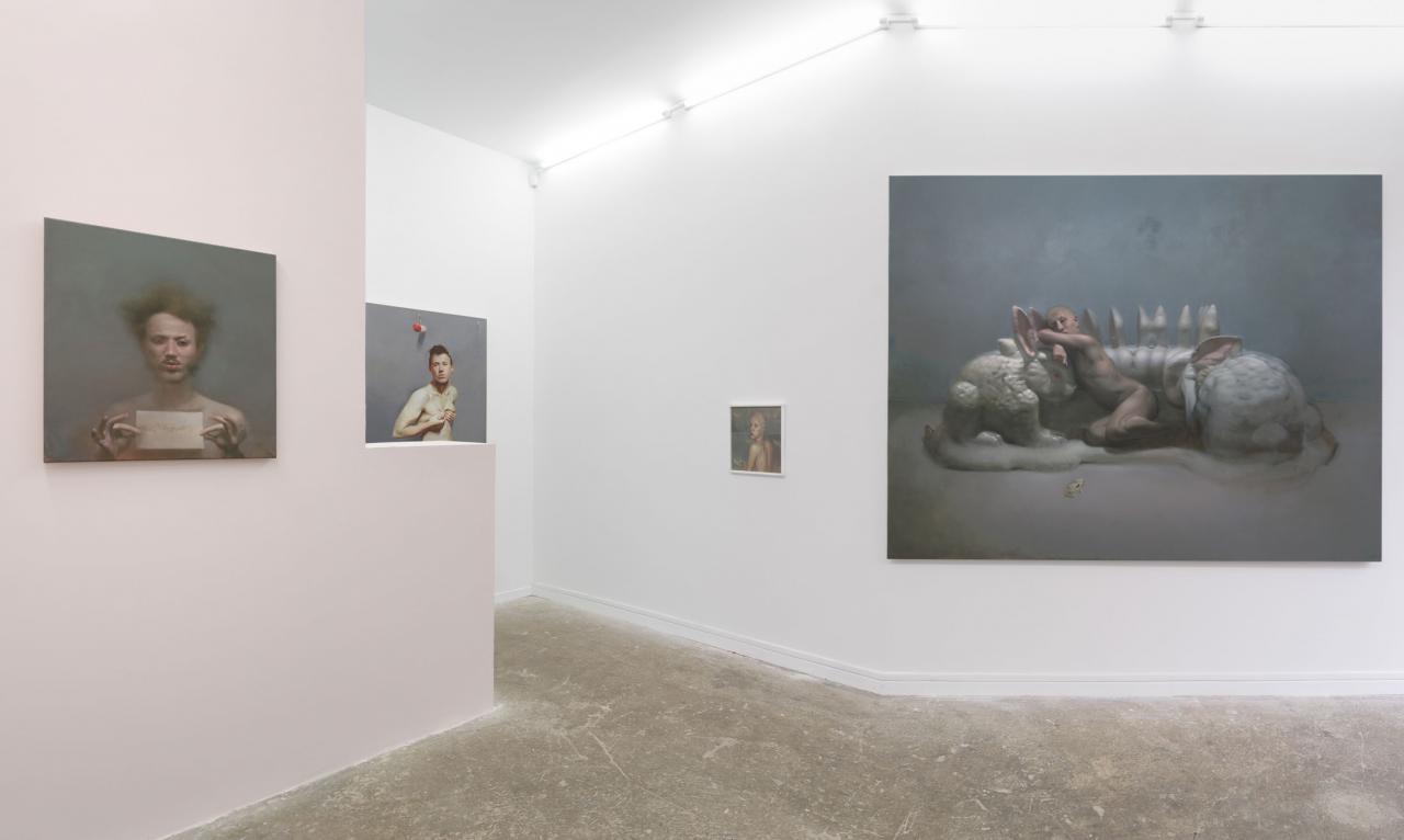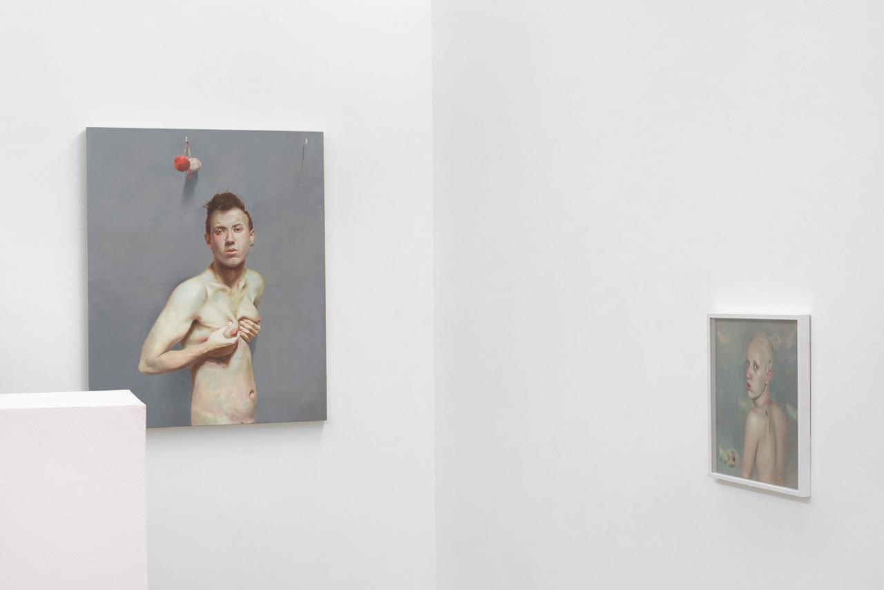 « (…) Les grandes peintures sont principalement des autoportraits où le corps nu de l’artiste est surpris dans les multiples possibilités qu’il expérimente.