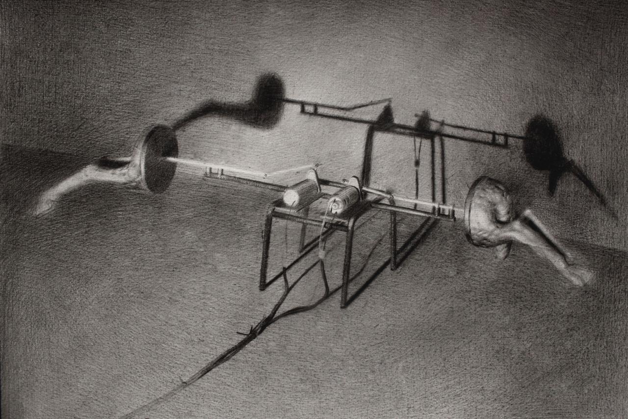 A·G·NUS - tractions avant/arrière, 2020Graphite sur papier, 27 x 36 cm.