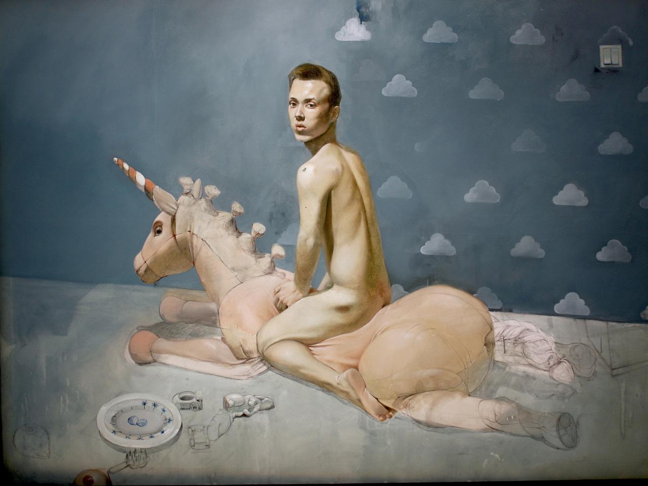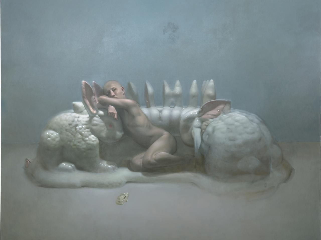 This is a form of painting in which the sublime and transfiguration coexist, as do the triviality of everyday bodies and objects, the sacred and the obscene, queerness (“the malleable properties of gender”*), realism and fantasy, imagination and dreams. From one painting to the next, Abel Techer shows us the very contemporary diary of his transformations. (…) Underlying connections repeatedly link his painting to vaster regions irrigated by the vivid unconscious of Creole societies. The succession of paintings composes a sort of coming-of-age narrative in which the painter’s body constantly transforms from one canvas to the next and, in doing so, comes closer to – at least in the biblical, if not magical sense of the term – a possible transfiguration.