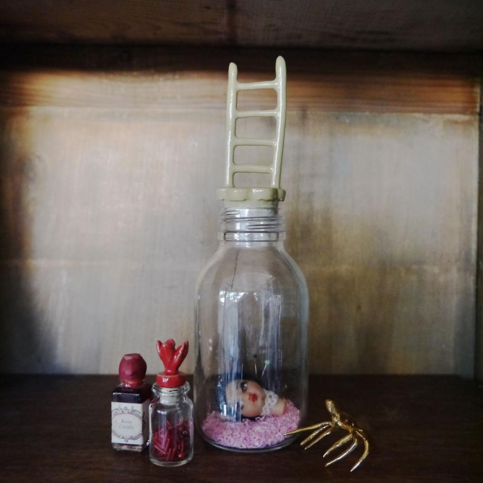 J’ai voulu une invitation surréaliste, magique et spirituelle où l’inconscient et l’irrationnel cèdent au spontané, au mystérieux, au sensible. J’ai voulu réenchanter des objets merveilleux et des trésors naturalistes. J’ai voulu un musée personnel ouvert à l’étonnement, au trouble et à l’attirance. En m’appuyant sur la psychanalyse jungienne, je détricote les mythes et les contes peuplés d’archétypes et ainsi je partage des connaissances cachées et pourtant millénaires, des secrets liés au féminin sacré. J’invoque les grandes figures féminines Médée, Circé, Ève, Salomé… Il est question de nature, de destinée et de transmission.