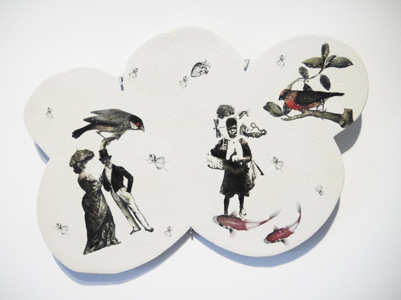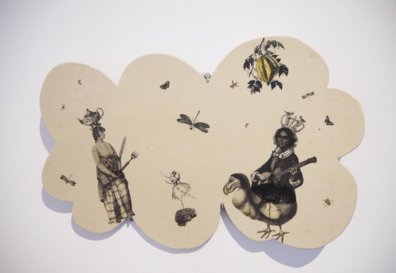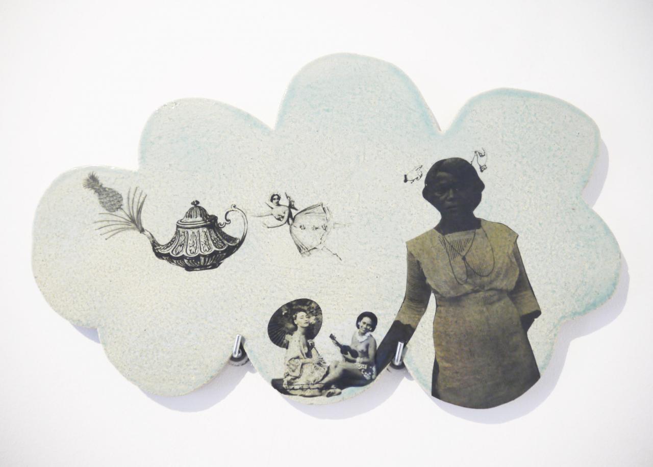 Arrière-plan : Nuages. Grès émaillé, chromos.