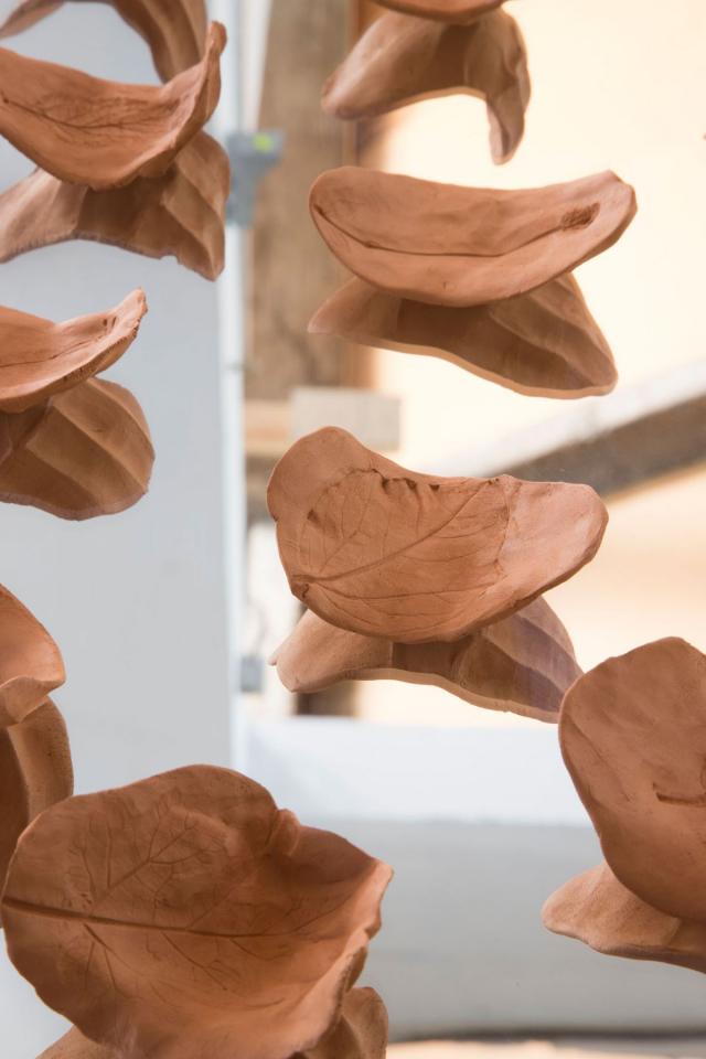 Vue de l’exposition de restitution de résidence à Mascarin, Jardin botanique de La Réunion.