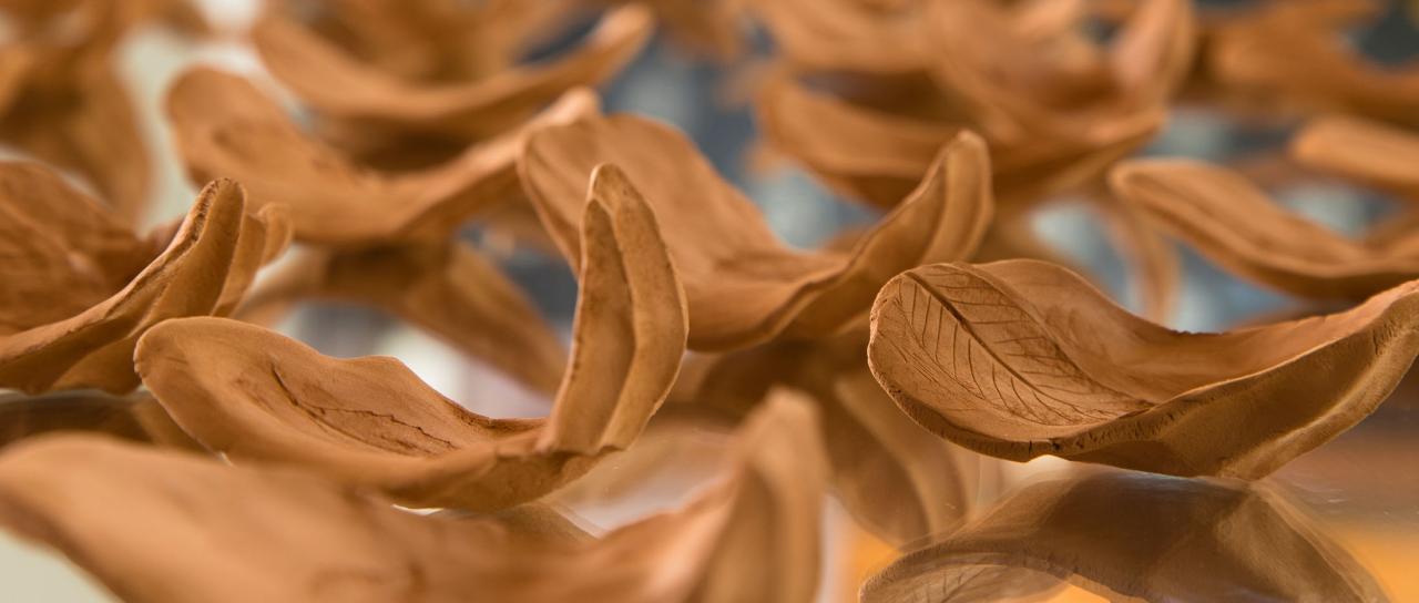 Série de céramiques portant l’empreinte de la main qui cueille et de la plante cueillie. Hommage au commensalisme.