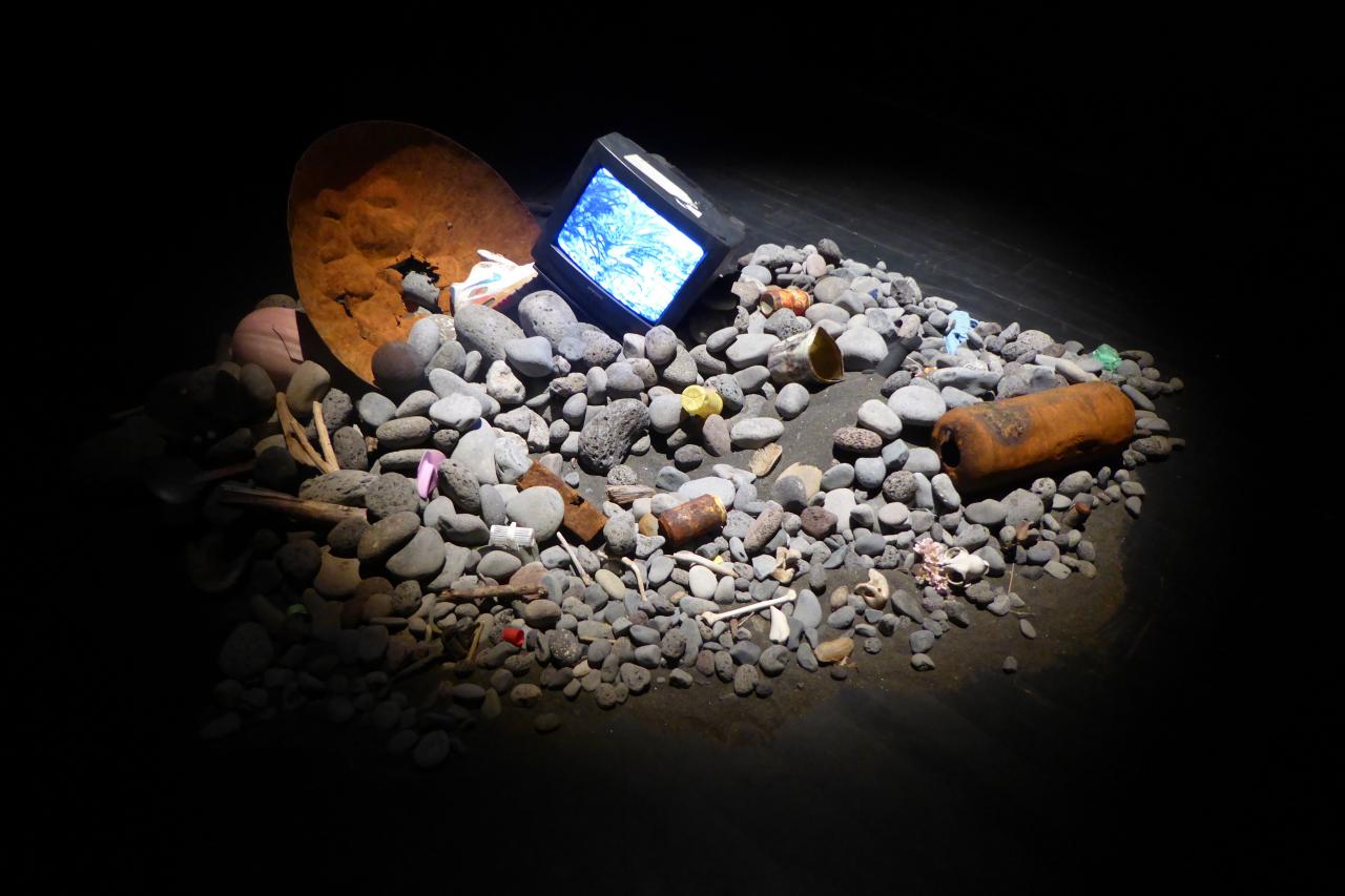 Installation, prélèvement de paysage : échantillon du front de mer de Saint-Denis.