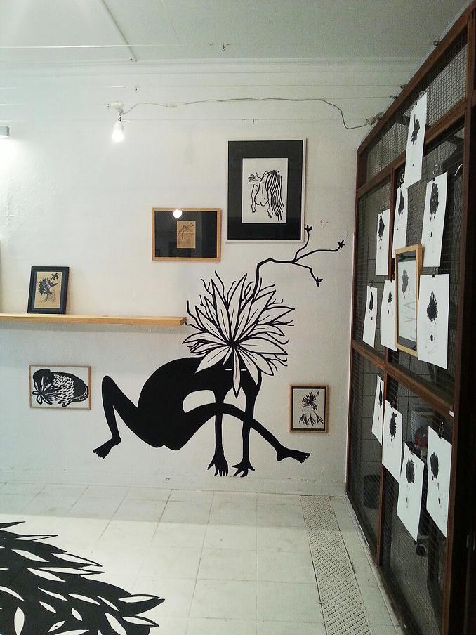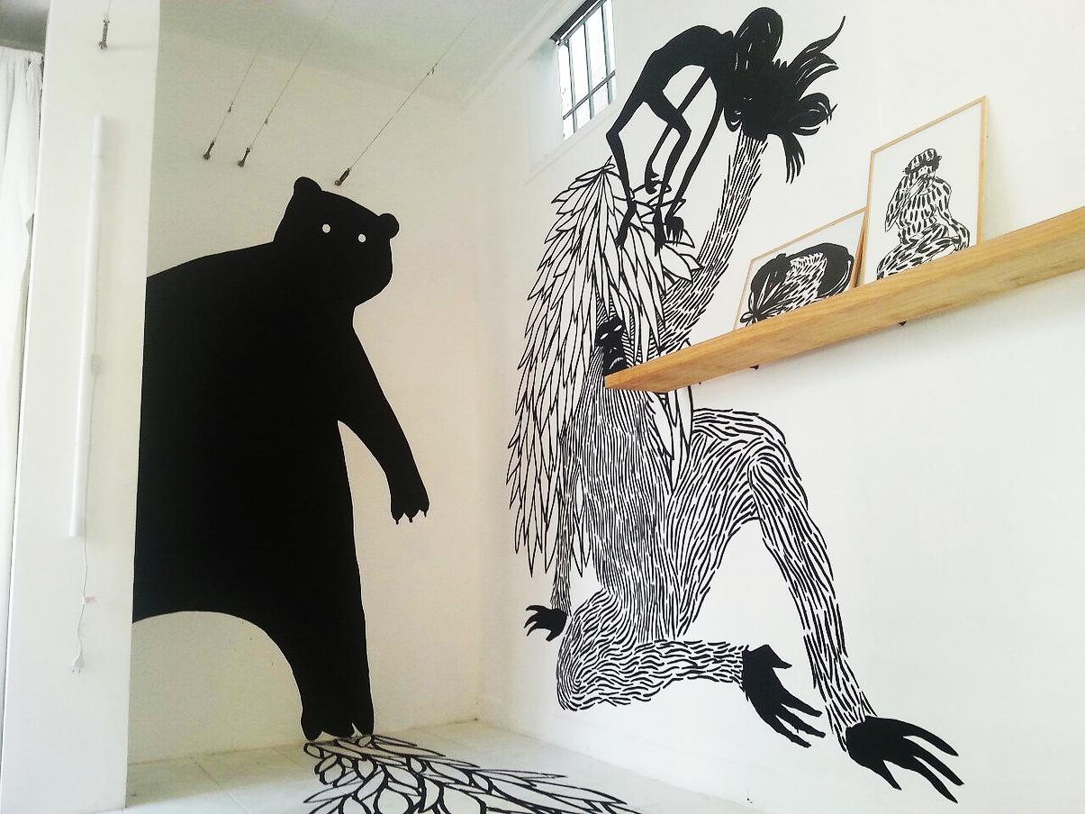 Sauvage Installation de dessins et peintures murales.Exposition Sauvage, galerie La Ligne, Saint-Denis, La Réunion, 2014.