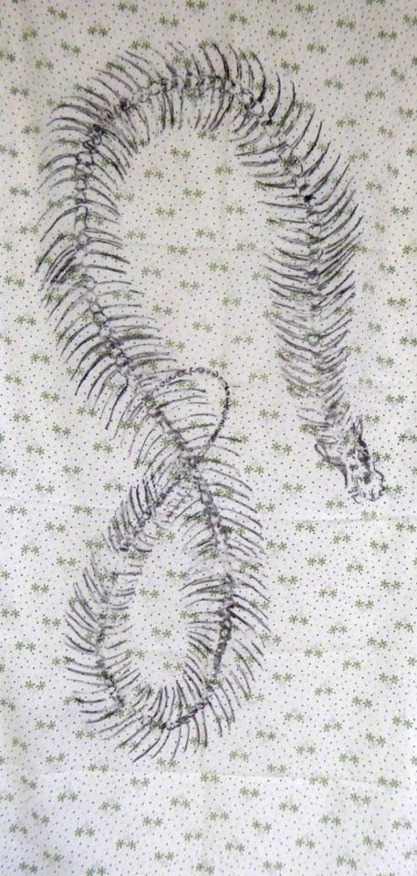 Fusain sur tissu, 120 x 40 cm.