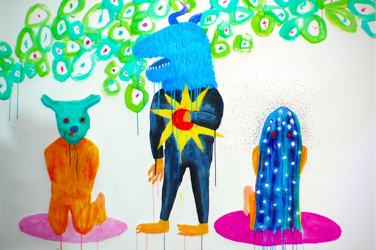 Avec Soleïman Badat. Techniques mixtes sur papier, 130 x 170 cm.