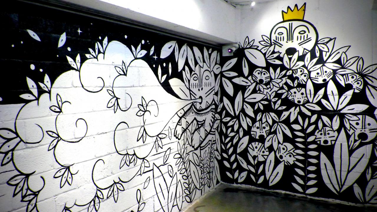 Avec Soleïman Badat. Acrylique sur mur, 100 x 200 cm.