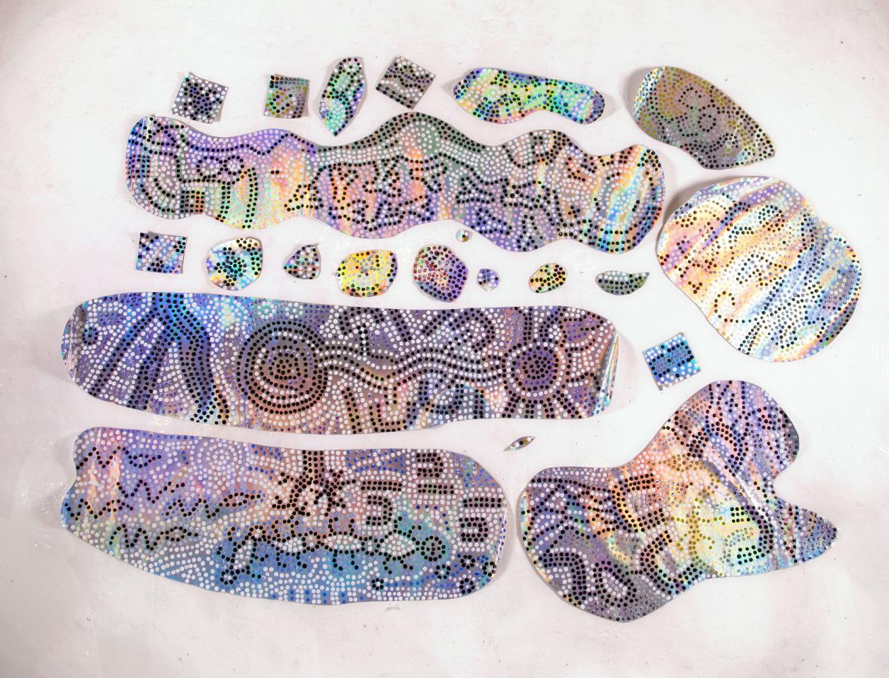 Cette série s’inspire librement de certaines esthétiques du dot painting issues des cultures aborigènes australiennes, sans en reprendre les significations culturelles spécifiques.