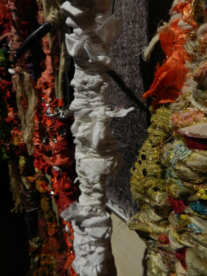 Détail. Photographie sur bâche, tressage de gros fils, découpes sur moquette.