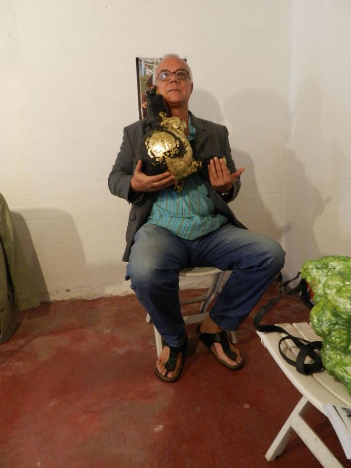 Installation, sculptures, chaises, vestes, tirages de la série Les Voleurs de trésors.