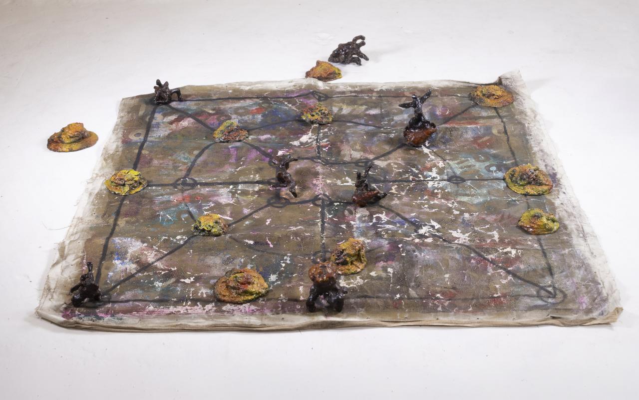 Plateau de jeu : huile sur toile, 110 x 108 cm.