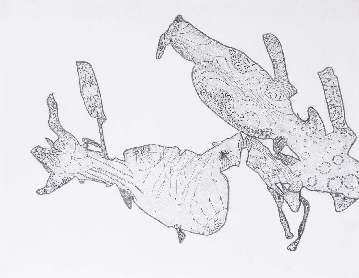 Série de 50 dessins, fusain, crayon, encre sur papier Canson, 50 x 65 cm.