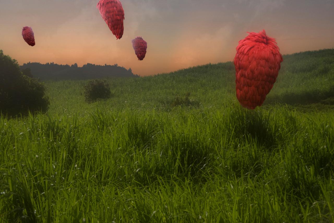 Au fond, sur papier : Arc en ciel 2 ; volume et photographies : série Ovni.