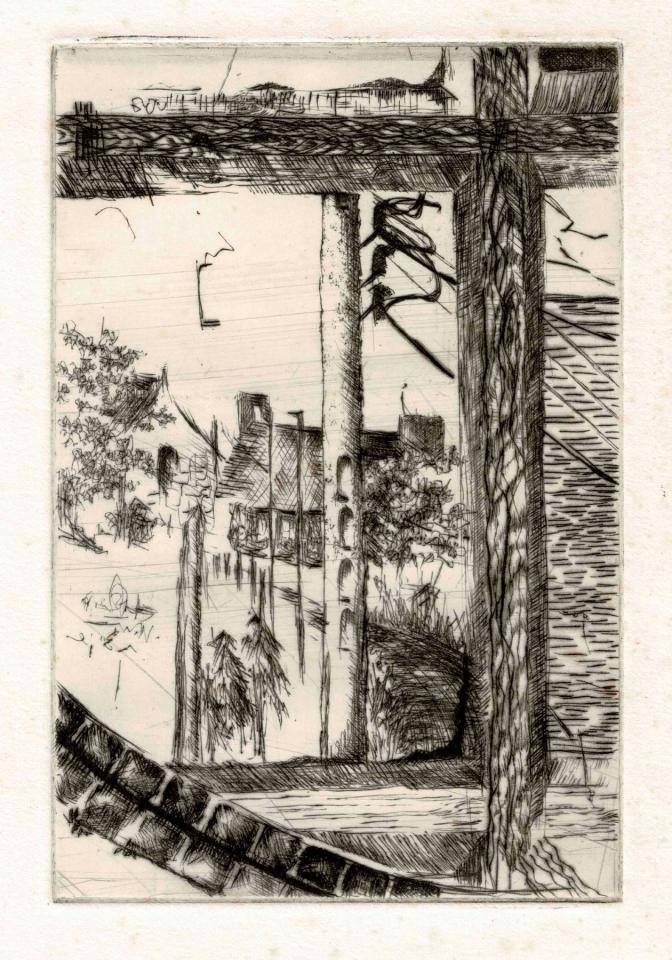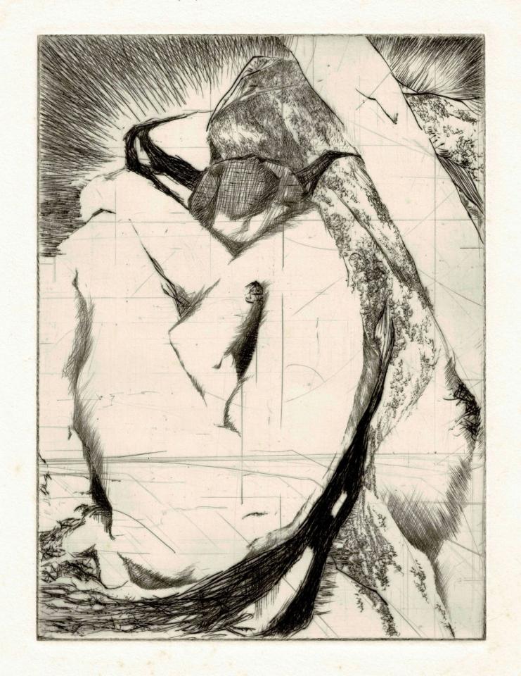 Gravure à la pointe sèche sur cuivre.
