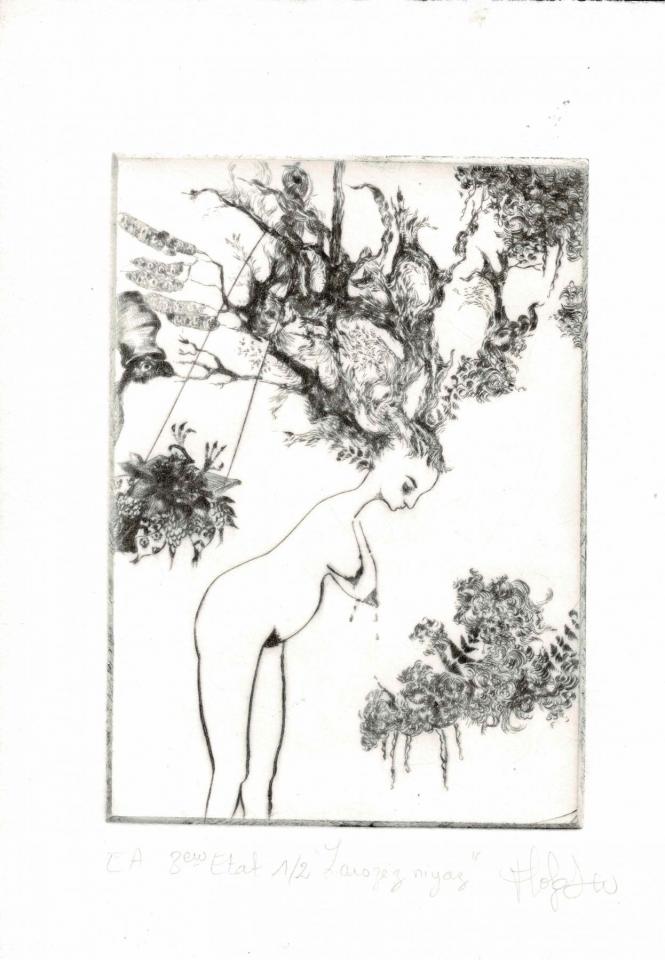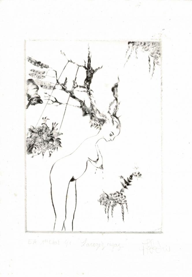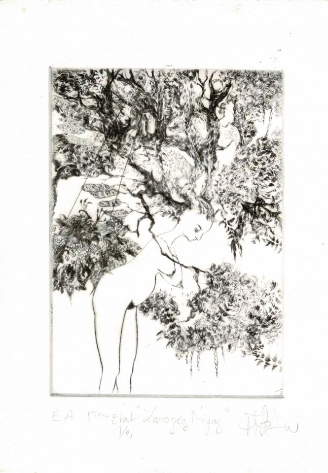 Larozèz nyaz Larozèz nyaz, 2020Grafinir si kwiv ék pwint sèk, 20 x 14 cm.Gravure à la pointe sèche sur cuivre.
