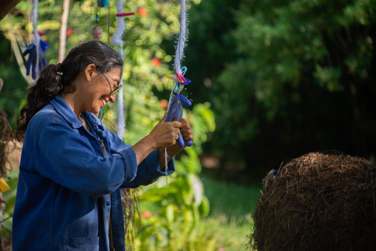 Fé èk dobwa sanm la pay, li razout anndan zafér i fé mazine lam gardyin la (kapline bourdoné, oulké, pinsalinz, la korn bèf…). Souvandéfwa i agard travay domoun la dopi anlér konm zafér insinifyan, pwatan, gardyin bèf minm i tonm zarboutan lamontrér in fason viv, in konésans zis an parol parèy lontan bann maron. Koté Vassivyère, lartis la parti pran pisa bèf8 èk sonyér bèf laba, po mèt an partaz sanm vizitér in zès-fonnkér an koumbla. Po anpar la mark boubou i fémal minm. (…) »