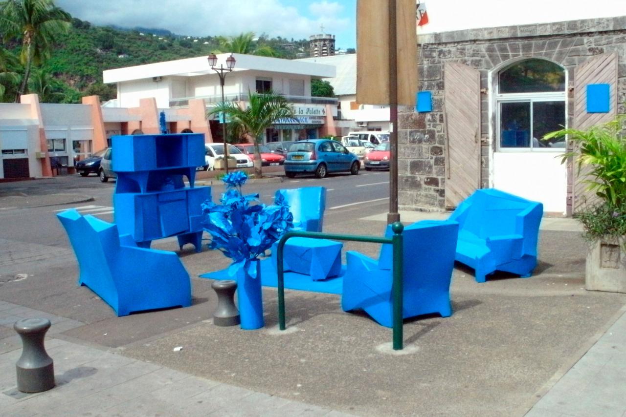 est d’ailleurs venu au cours d’une discussion avec Fred. C’est une métaphore, un hommage à l’histoire de l’île et de ses habitants. À l’époque les espaces de diffusion à La Réunion étaient très restreints : le musée Léon Dierx, l’Artothèque et une ou deux galeries, mais on savait que les Réunionnais ne fréquentaient pas ces espaces.