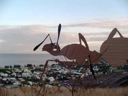 Je me souviens du jour où on a eu l’idée de la première installation, Les fourmis. On était dans la voiture, dans les embouteillages à l’extrémité de la quatre voies. À l’époque, il n’y avait pas encore la route des Tamarins et la quatre voies s’arrêtait à Saint-Paul, à l’embranchement de Plateau Caillou. On voyait les rampes avec les voitures qui montaient en zigzag et on a réfléchi à notre condition d’êtres humains, qui étions là dans nos voitures, à ne pas avancer, à la queue leu leu, bloqués dans notre système capitaliste. On n’avançait pas, il faisait chaud, c’était naze et on était tous là les uns derrière les autres, comme des fourmis…