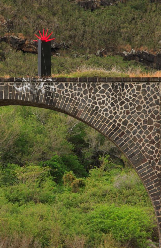 Oui, c’est la septième et dernière fois qu’on l’a sorti. On l’avait posé sur l’ancien viaduc de chemin de fer à la Ravine Saint-Leu, pendant le Leu Tempo Festival9