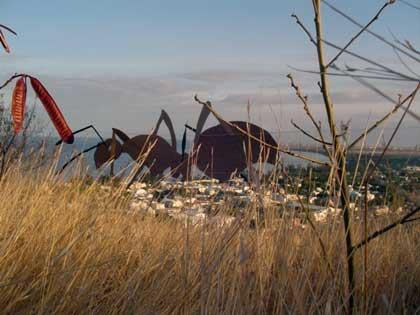 Pendant des jours, on a fait des repérages et des tests : on tendait des cordes comme les lignes d’une portée musicale entre les arbres et les buissons, on y accrochait des gabarits, et ensuite on redescendait, et on voyait ce que ça donnait. C’était technique : si on se mettait trop loin du bord, on ne voyait rien, si on se mettait trop près, on était dans le vide. On a donc repéré comme ça toute une série d’endroits, et un matin à 4 heures on s’est donné rendez-vous et on a posé l’installation finale. Ça a donné huit fourmis géantes, qui se suivaient, les unes derrière les autres, juste au-dessus de la route. Des gens ont même appelé Radio Free Dom pour demander ce que c’était.
