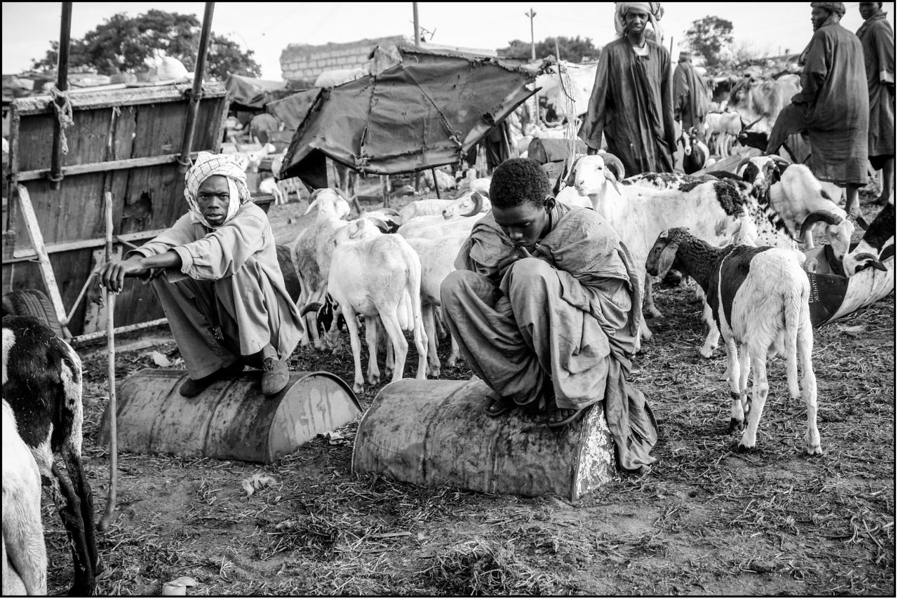 Au marché, les bergers vendent la nourriture.