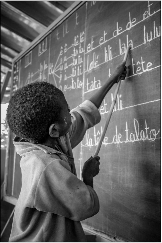 Au tableau de l’école, je lis : ” la tête de talato ”.
