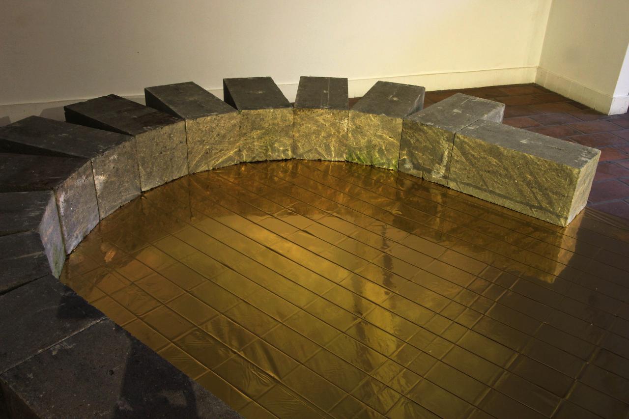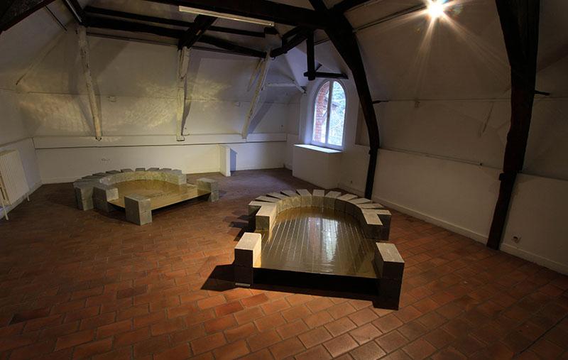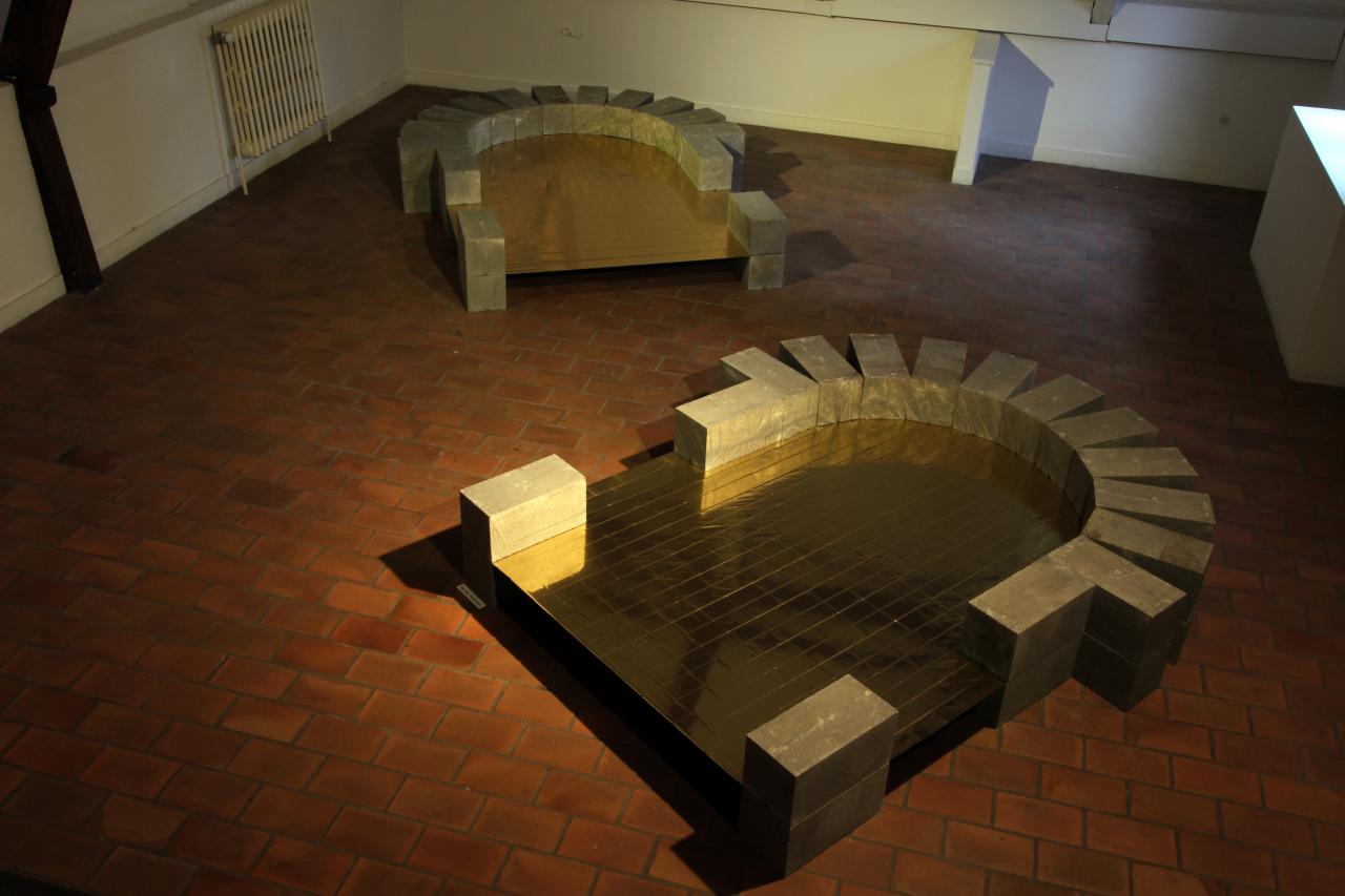 « Le bruit du monde est une installation évolutive, constituée de parpaings de construction et de couvertures de survie. Des mini-ventilateurs viennent se positionner sous les couvertures tendues et les font vibrer. Différents sons en fonction de la taille de l’installation se mêlent pour former une ambiance sonore proche du chuchotement. L’aboutissement de cette pièce est prévu dans une dimension architecturale dépassant la notion de sculpture. Un ouvrage complet de 100 m², fabriqué comme un campement, avec plusieurs niveaux de couvertures est en cours d’élaboration. Cette installation s’inspire de la poétique d’Édouard Glissant. »