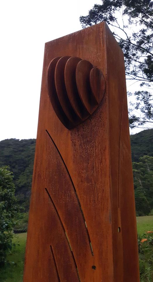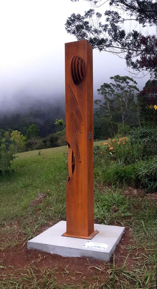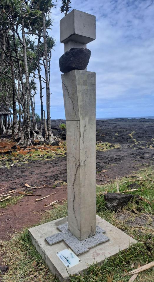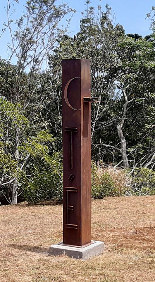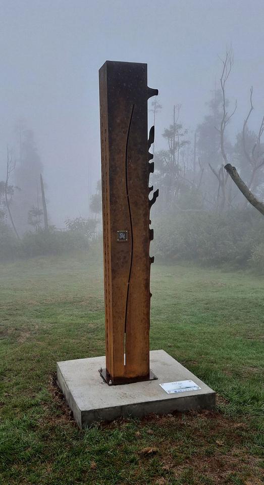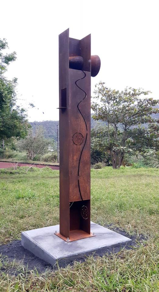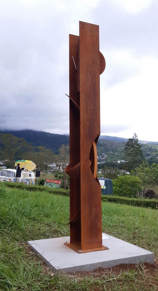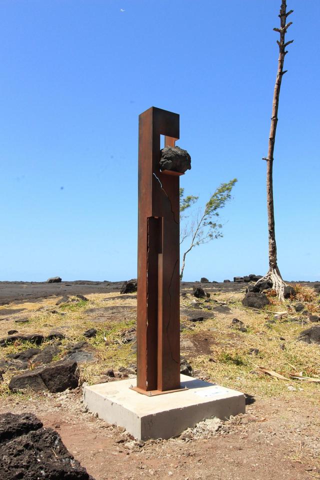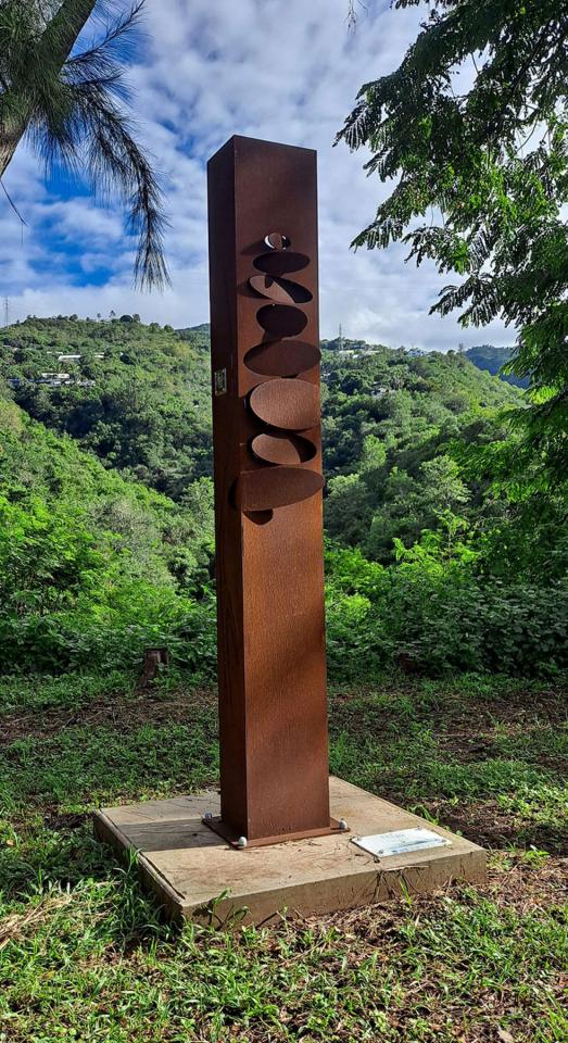 Série de sculptures monumentales (acier corten, socles en béton, QR codes), installées en différents points du sentier Fah’Âme à La Réunion.