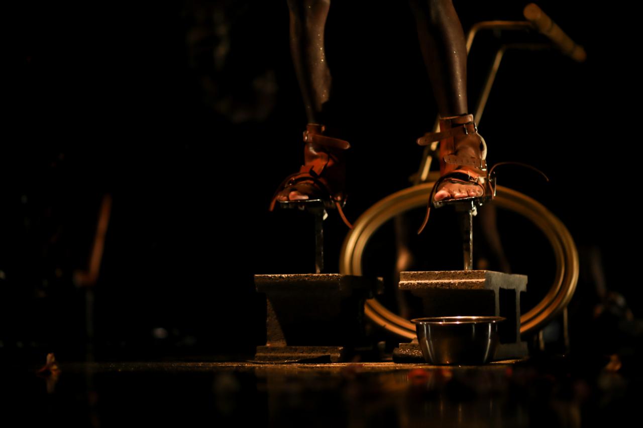 Entre danse et performance, cette pièce propose des dispositifs scénographiques qui cherchent à bousculer nos certitudes. Petite machinerie ludique et interactive, mise en jeu d’objets étranges, détournés de leur fonction, qui entraînent une poésie de l’improbable.