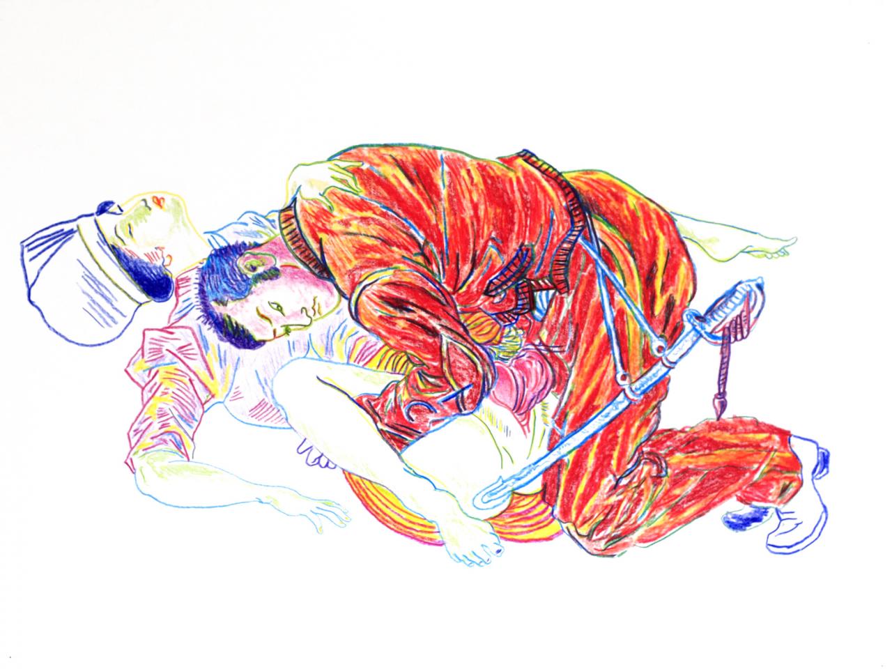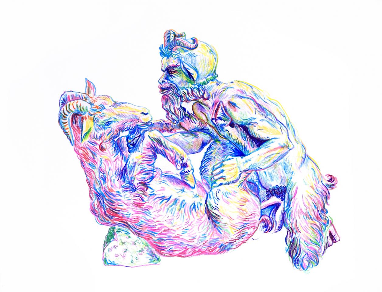 « Navigation et choix d’images sur internet, entremêlant actualité et histoire de l’art. L’art de faire télescoper des images sorties de leur contexte, de créer un corpus où les connexions se font de façon aléatoire, recréant une mythologie contemporaine. »