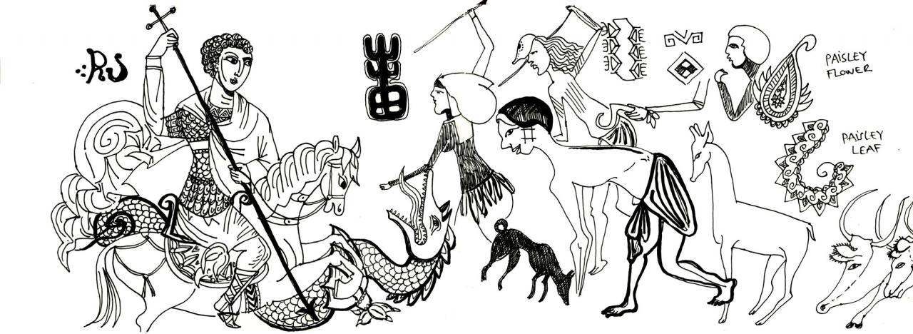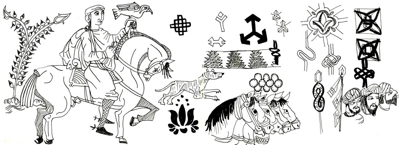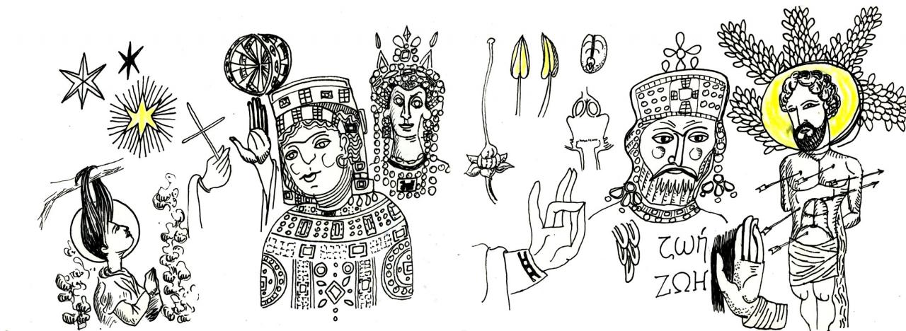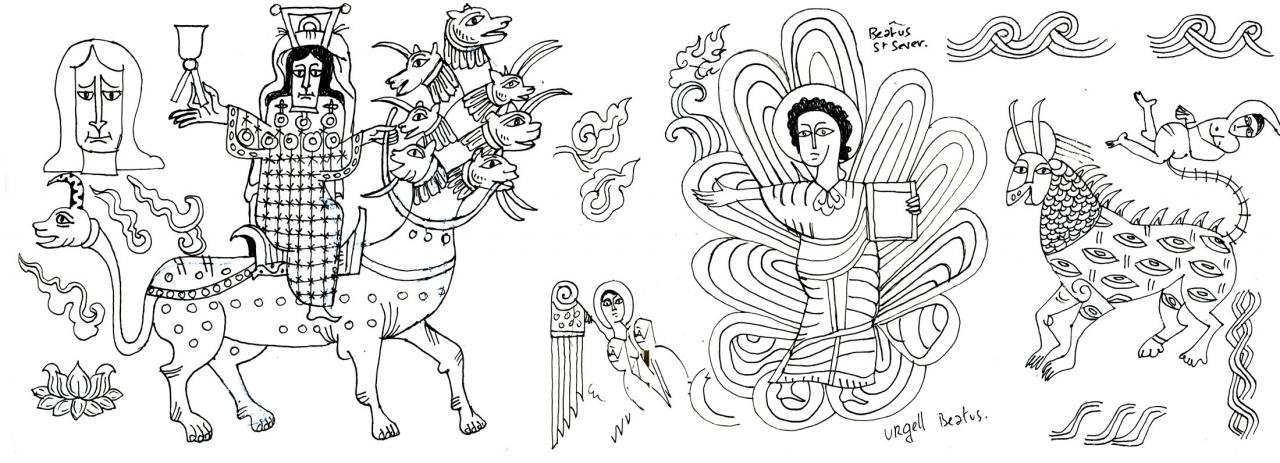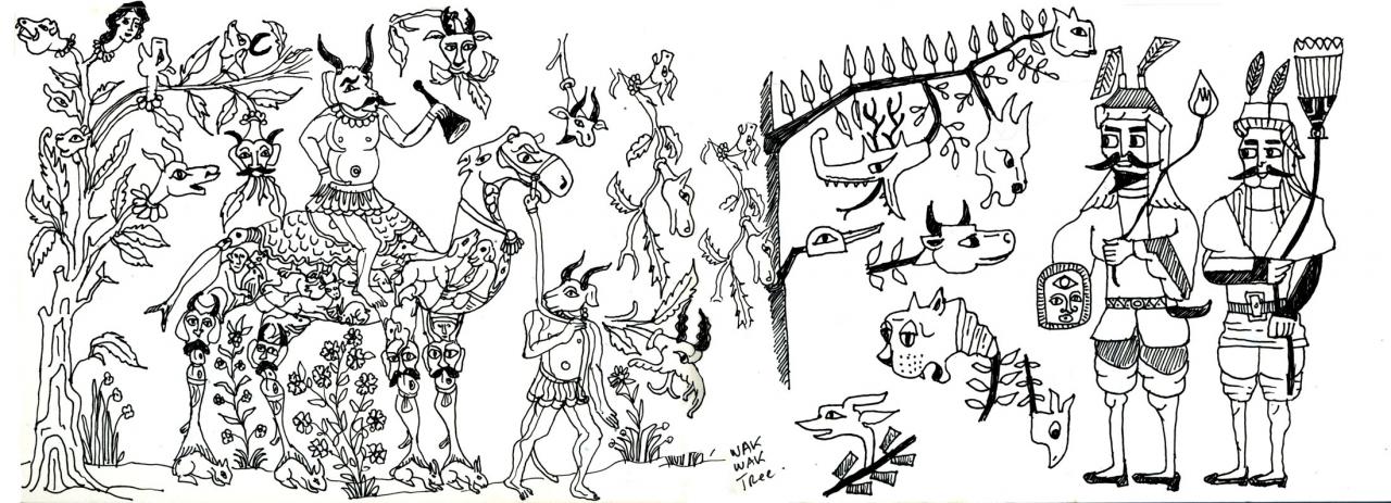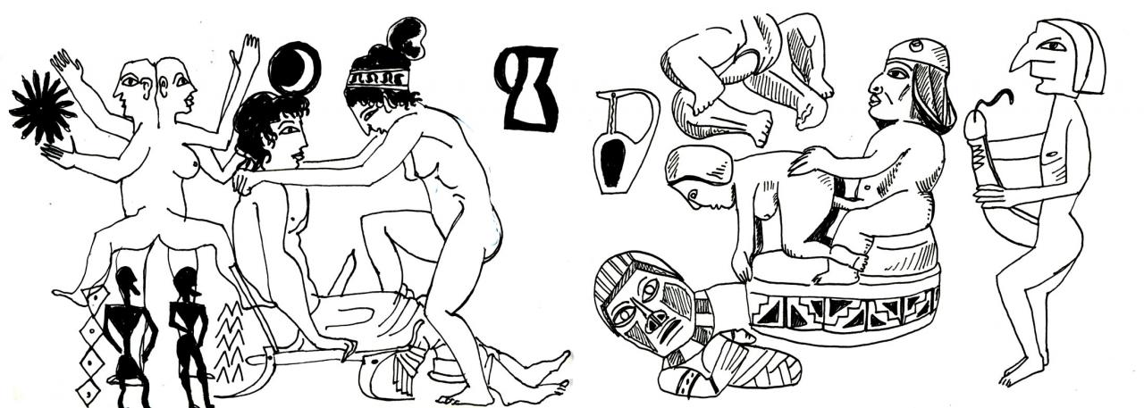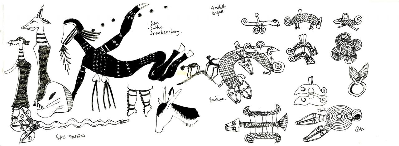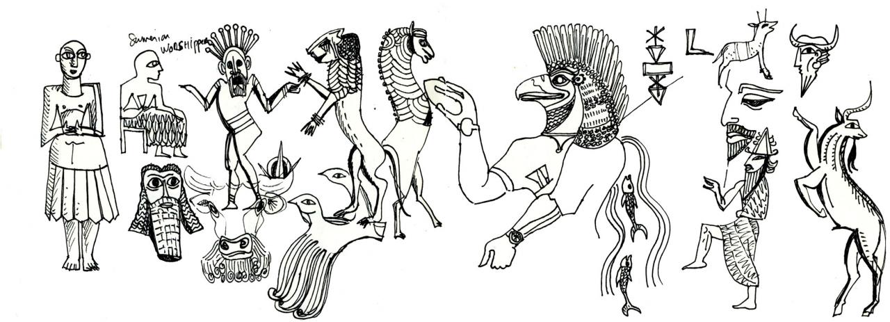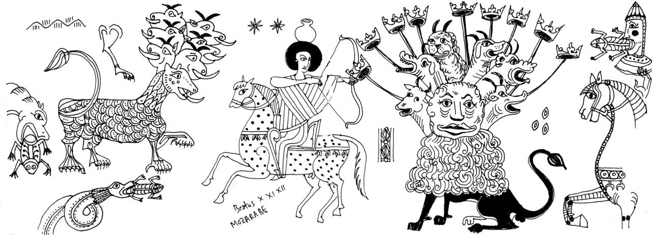 « Le mythe est-il un mensonge ? Le Mythomane est dit menteur avéré et d’une grande imagination. La mythomanie est censée, quant à elle, relever de la folie. Une mythomanie serait le recours systématique aux mythes. Il y a là un glissement de sens, pour définir une pathologie. Dans une recherche d’universalisme entre époque, culture et géographie, cherchant des archétypes, ce travail de dessin entre prise de notes et travail de copiste, permet un télescopage de figurations et de symbolismes divers, créant ainsi des passerelles de lectures plurielles. Le graphisme par le biais du trait spontané d’une même main mais mêlant différentes influences, joue à brouiller les pistes, comme s’il s’agissait d’un seul auteur, d’une seule époque, d’un seul lieu. Raconter des histoires, des mythes, c’est accepter les variations et les différentes versions d’une réalité lointaine et si proche. »