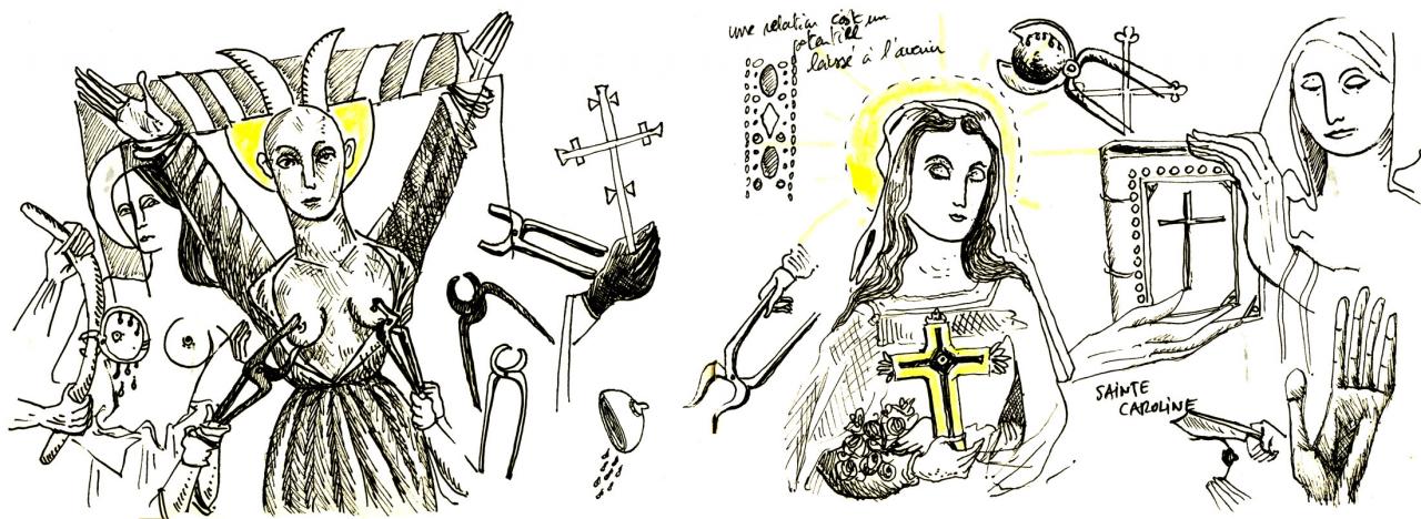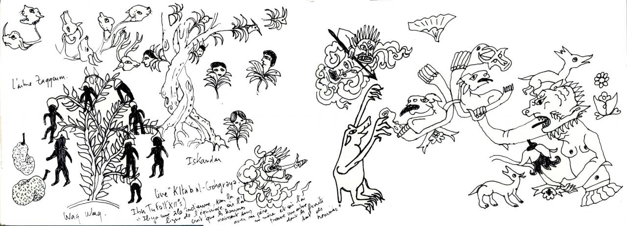 Carnet de dessins à l’encre pigment sur papier, dimensions variables.