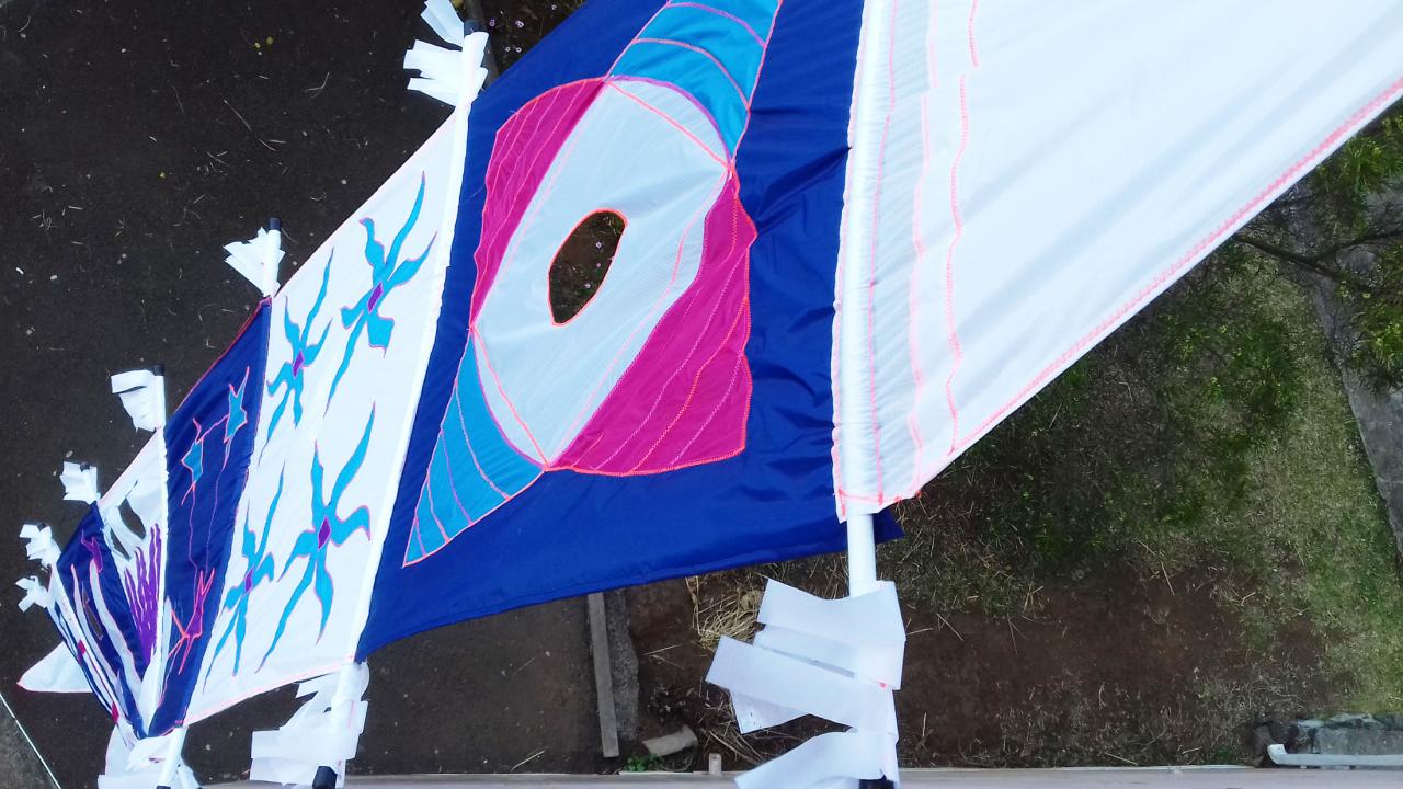 Oriflammes en shicarex cousu, 600 x 60 cm.