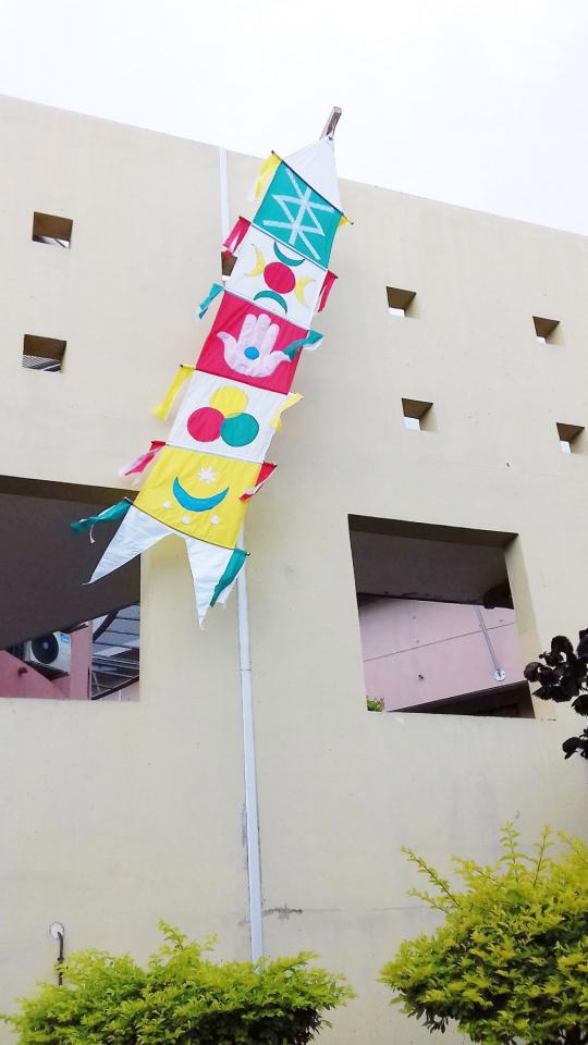« Sculpture mobile inspirée du Nargoumila malbar commun à la Réunion et aux Antilles. Il est un objet divinisé relatant la rencontre entre l’islam et la religion hindoue. Il relate et symbolise l’histoire d’une traversée des océans plus que périlleuse et un accostage salutaire. Objet représentant l’apport d’un saint soufi musulman, Wali Allah de Nagour, au sud de Karikal, port de départ des engagés indiens. C’est la reconnaissance d’une part d’islam dans la culture indienne. Dans le contexte de l’archipel des Comores, les traversées clandestines et funèbres pour certain·es, j’ai voulu décliner un nargoulan actualisé, symbolique, pour donner protection et bon augure à tout déplacement à venir. »