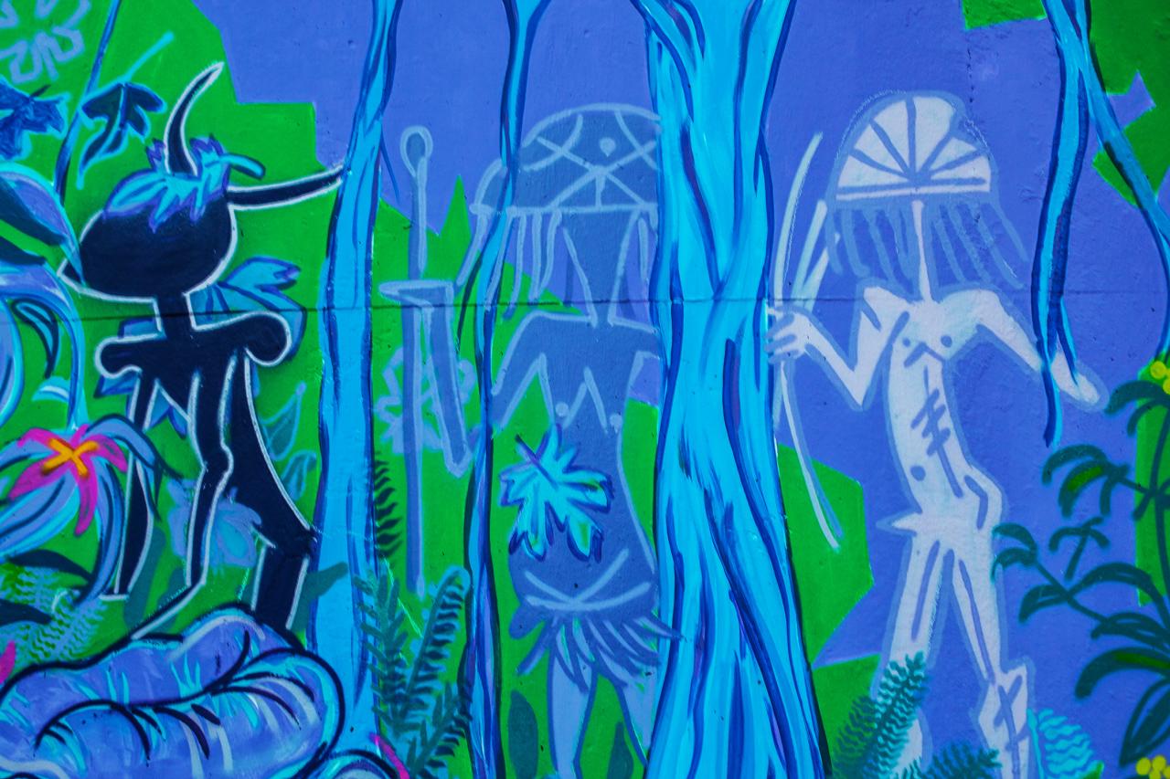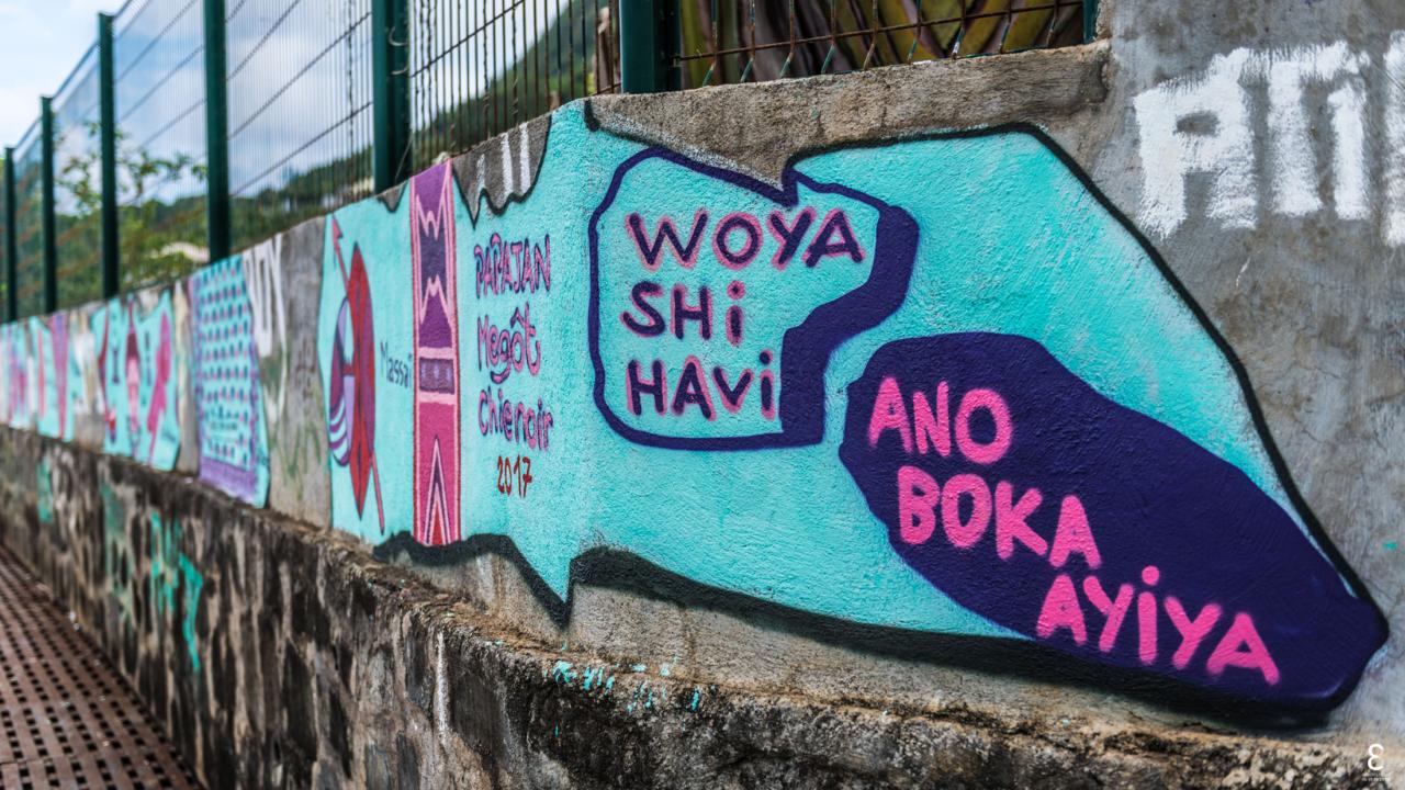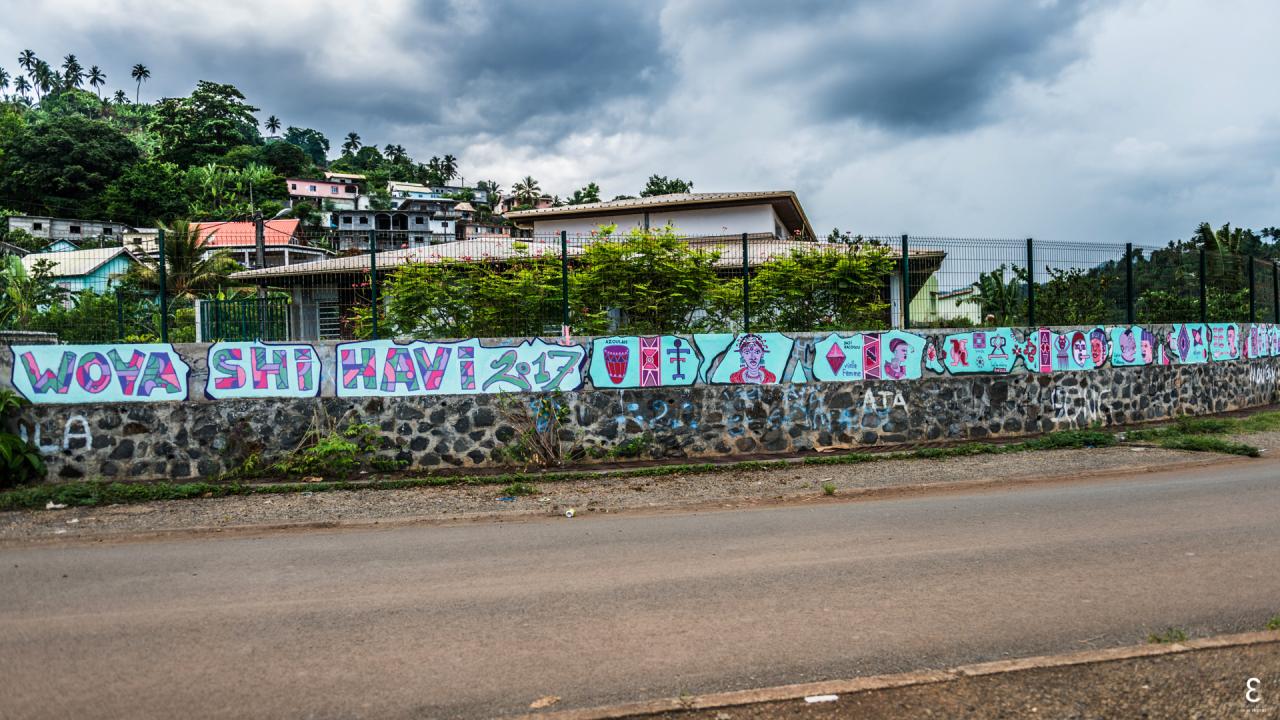 Woya Shi Havi prend la forme d’une fresque croisée, dispatchée en plusieurs « panneaux » sur différentes zones géographiques symboliques, visible aux extrémités Nord, Sud, Est et Ouest de Mayotte et sur les hauteurs d’une route reliant la mer au cœur des cirques de La Réunion.