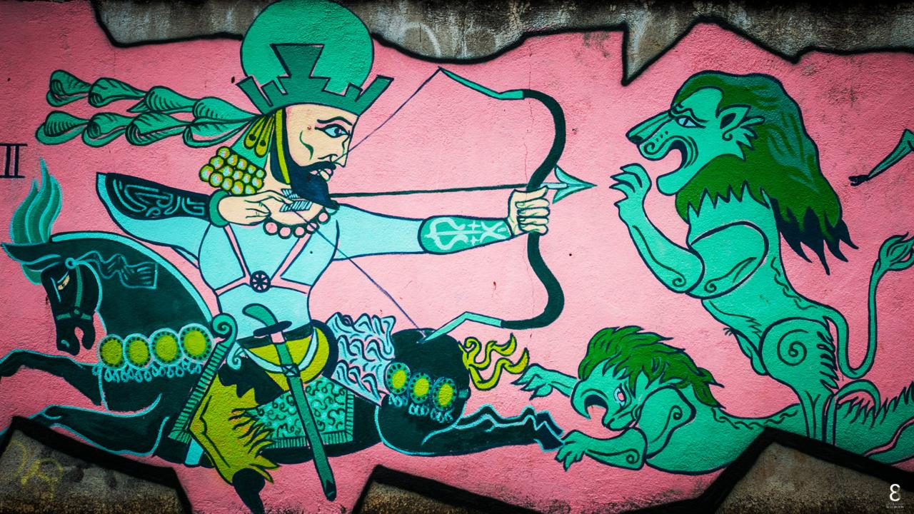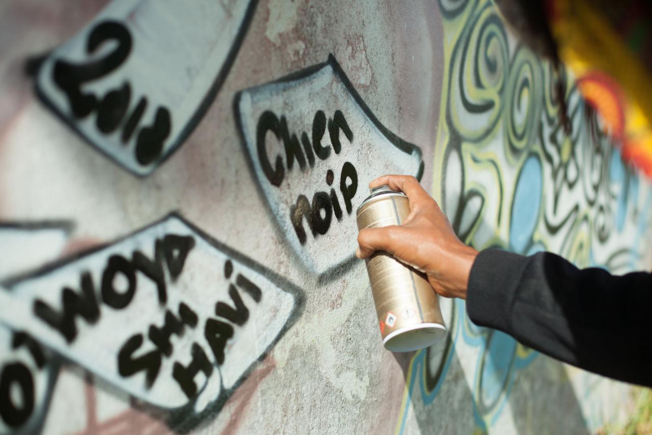 « Les lignes, les figures, les formes et les couleurs, bases de travail de tout artiste plasticien, forment un langage imaginaire à la fois abstrait et universel. Certains street artistes déclinent des grammaires visuelles dans l’espace urbain chargé d’histoires, alliant les fonctions décoratives aux messages citoyens ou militants, entre autres récits des rapports humains. Le propre de l’art réalisé dans la rue, en plus de s’adresser à tous en habitant l’espace public pour le sublimer, le questionner ou le « faire parler », est aussi de traverser les frontières, rencontrer l’ailleurs et se répandre sur les parois du monde.