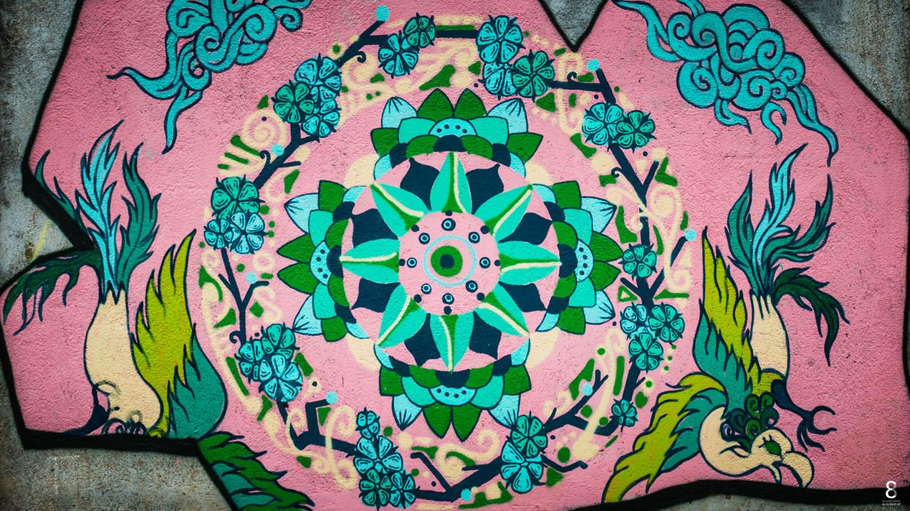 « Les parties de la fresque réalisée à Mayotte partent de l’idée des 4 points cardinaux pour créer un rythme territorial, où 4 endroits de l’île seraient marqués par les interventions artistiques, et appréciables par les habitants de l’île.