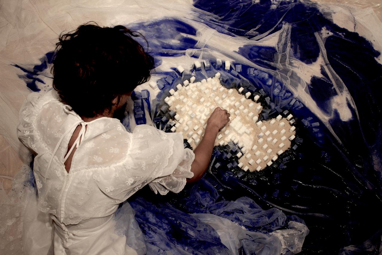 Le geste performatif est au cœur du corpus Topographies de sucre. Mais ce geste fabrique, en plus de ces topographies éphémères, quelque chose de plus durable : les traces photographiques et vidéo.