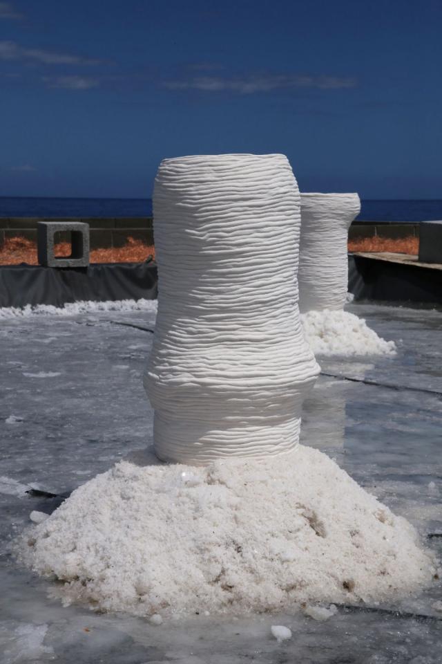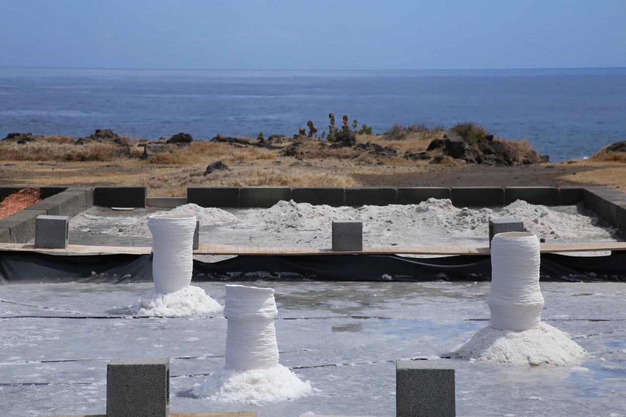 Sculptures installées, céramique, sel, dimensions variables