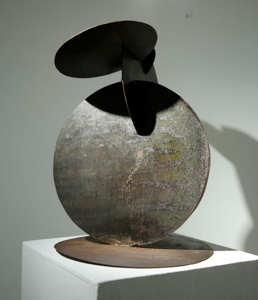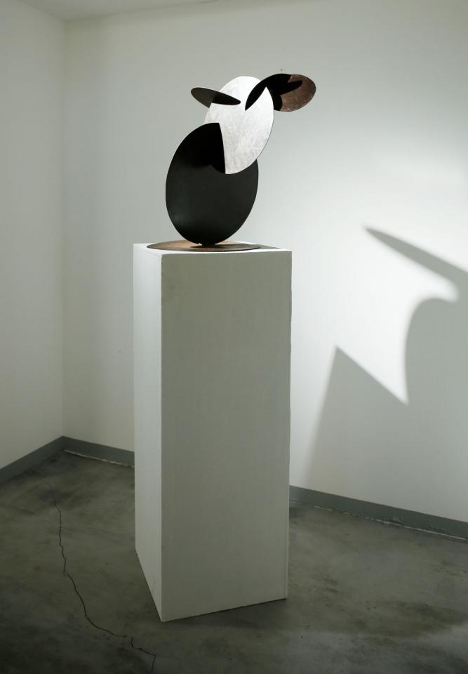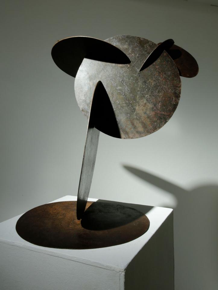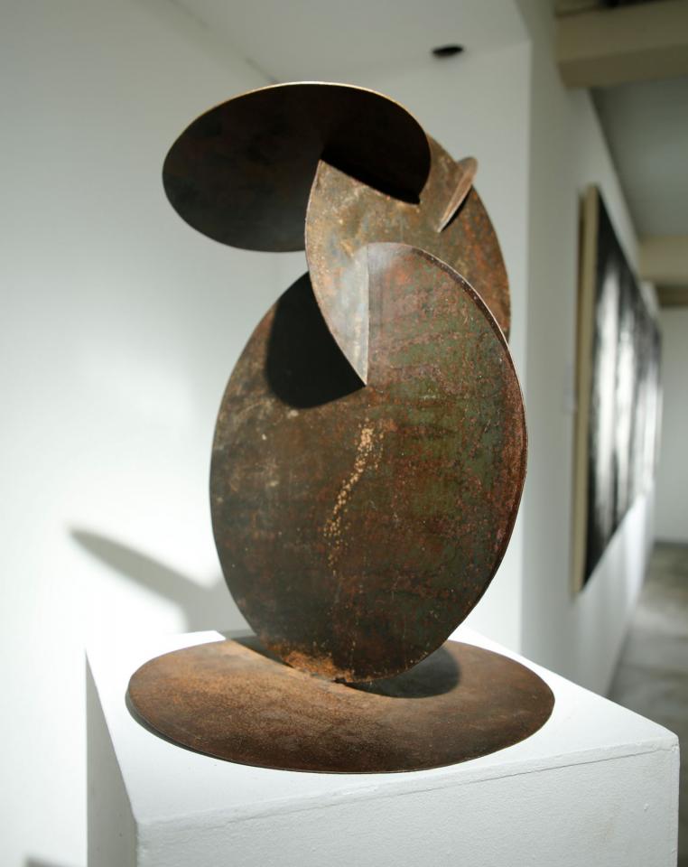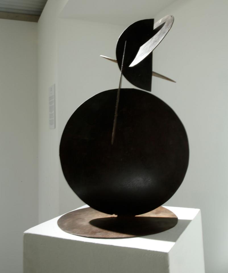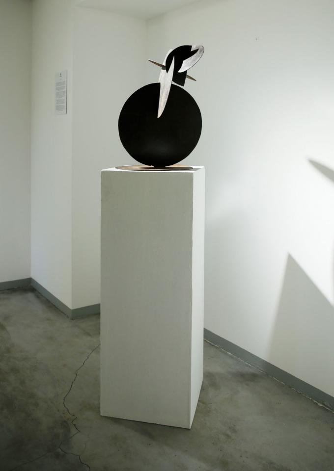Sculpture, acier noir verni, hauteur 70 cm, diamètre 40 cm.