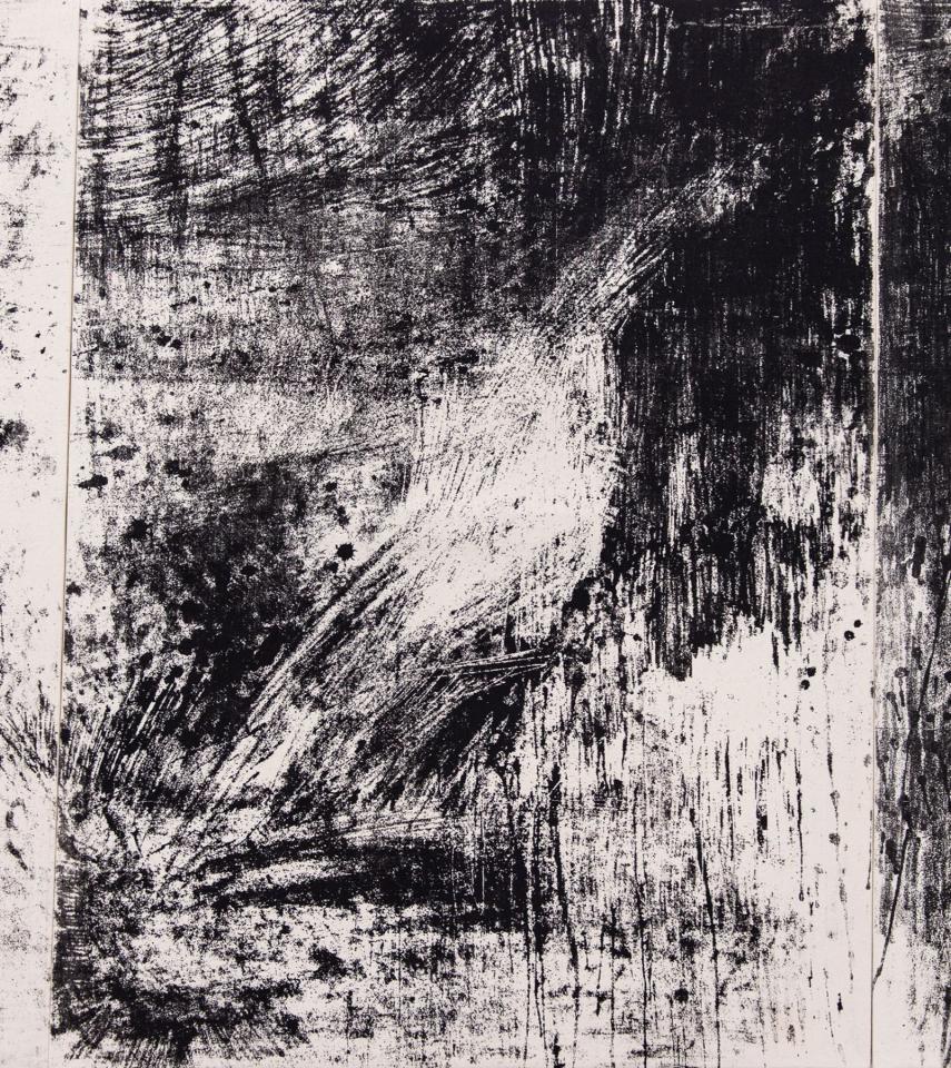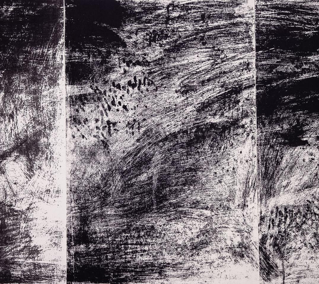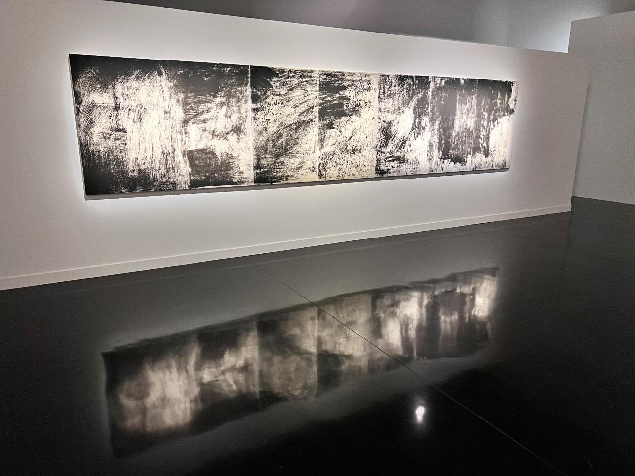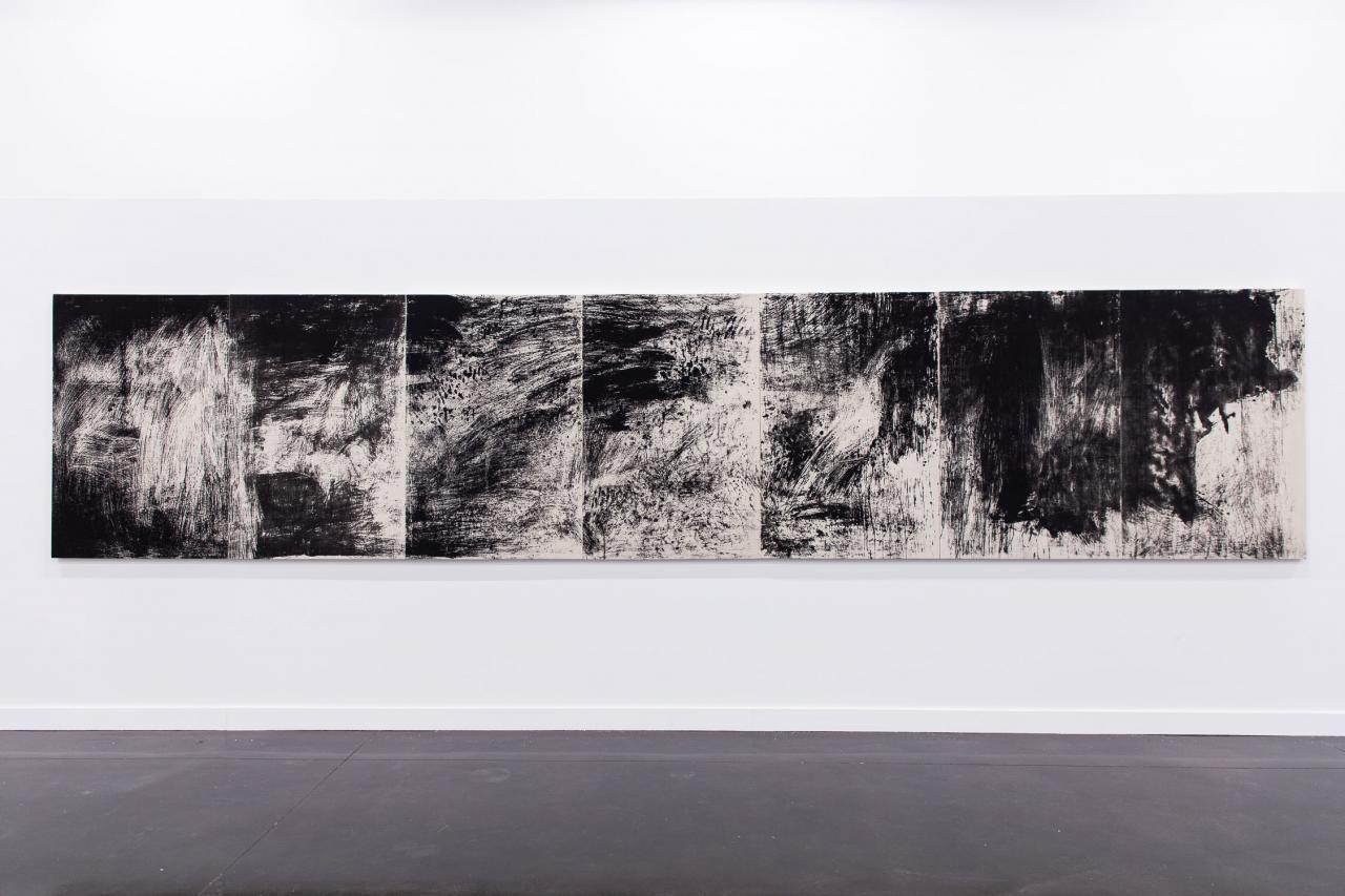 Sérigraphie sur coton à l’encre, 125 x 574 cm.