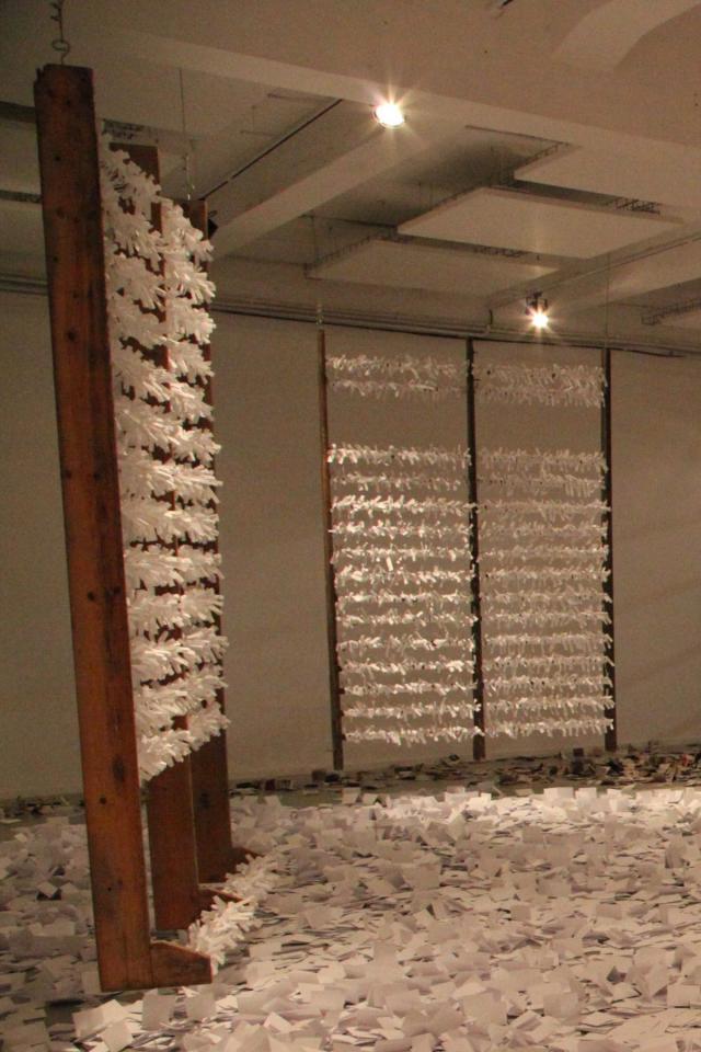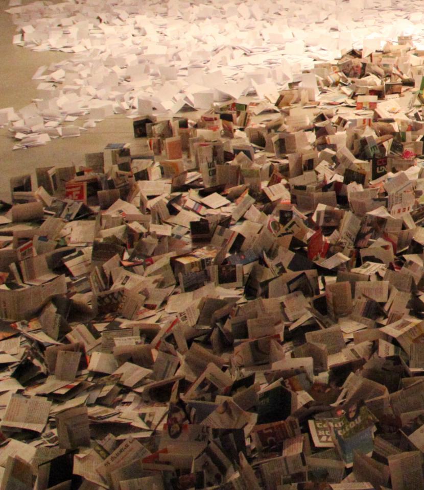 Installation, papier journal, papier machine, bois, fil de cuivre