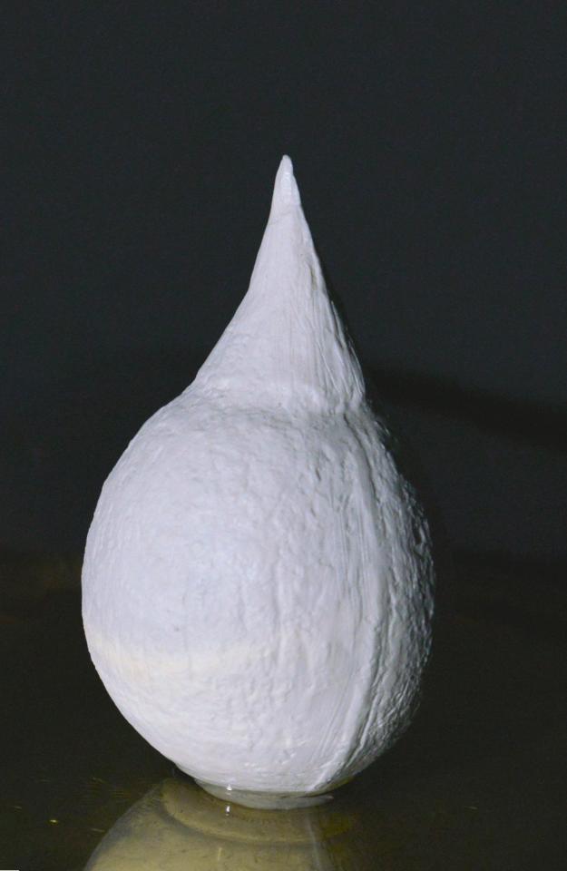 Noix de coco en porcelaine, accrochée en hauteur, qui tombe et se brise au sol inlassablement. Dans le culte hindouiste, la noix de coco représente l’ego.