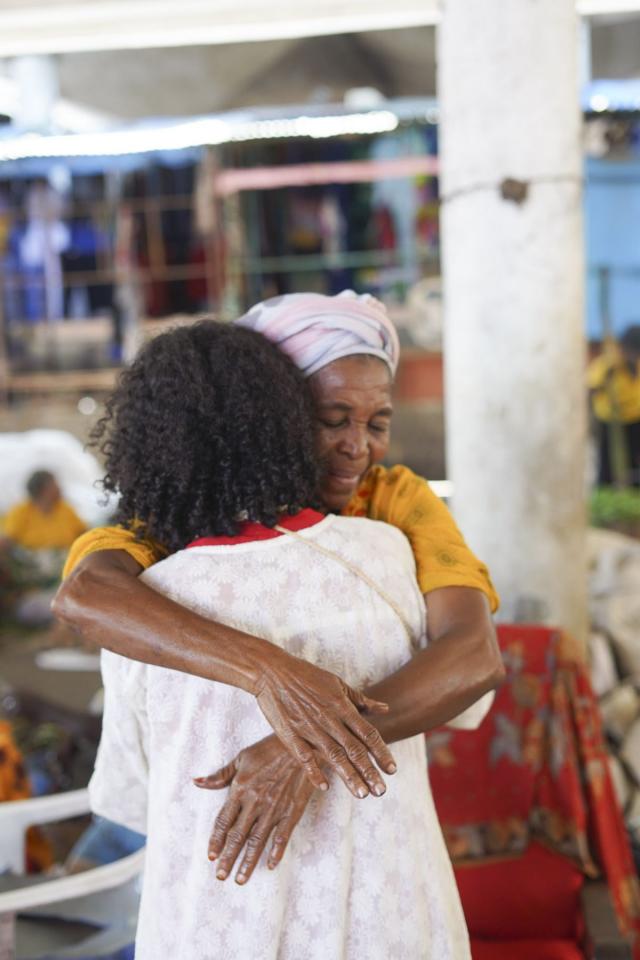 Je souhaitais mettre en avant toutes ces femmes ordinaires et exceptionnelles, toutes aussi importantes que moi. Ces femmes, celles qui travaillent sur le marché populaire de Volo Volo, m’ont touchée par leurs sourires, leur présence.