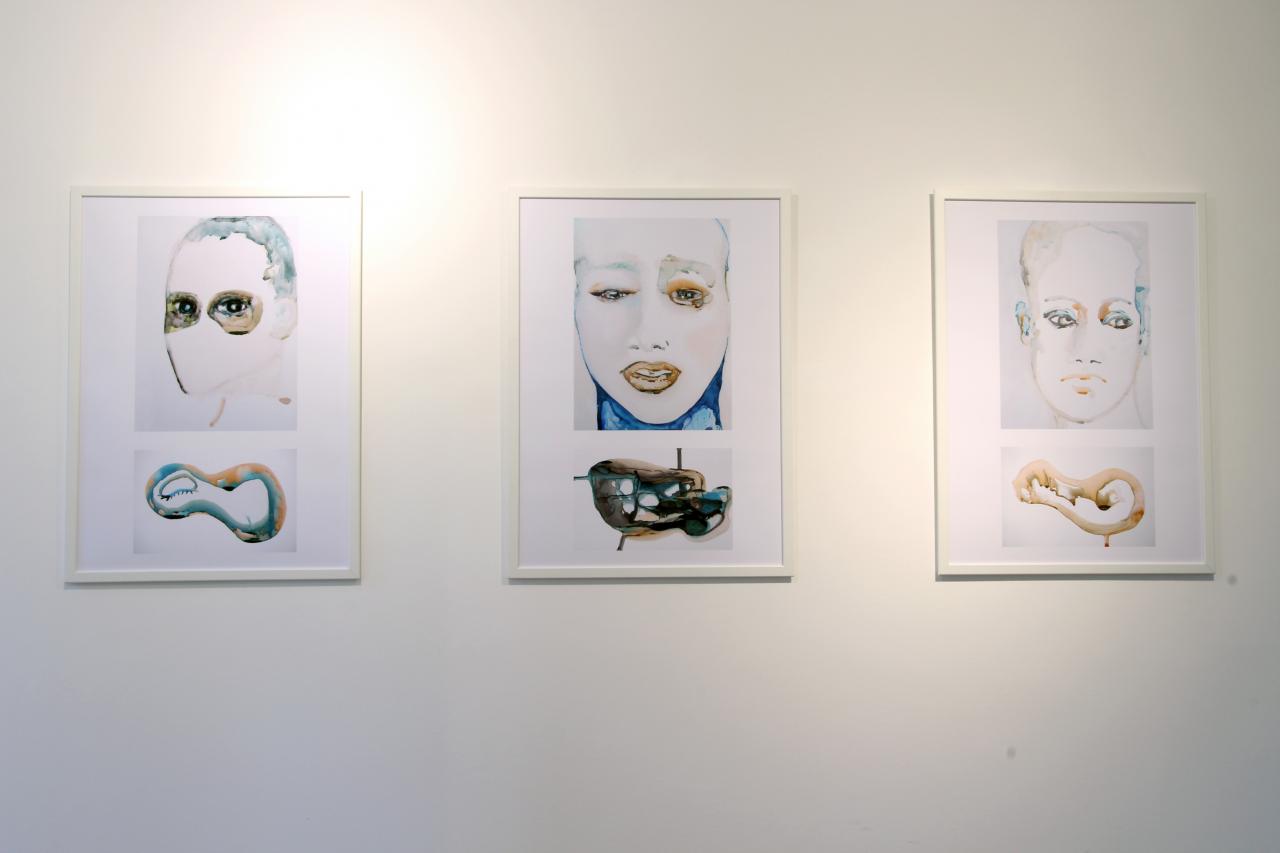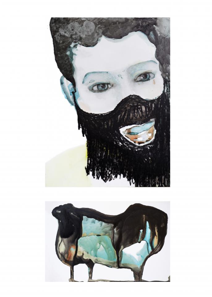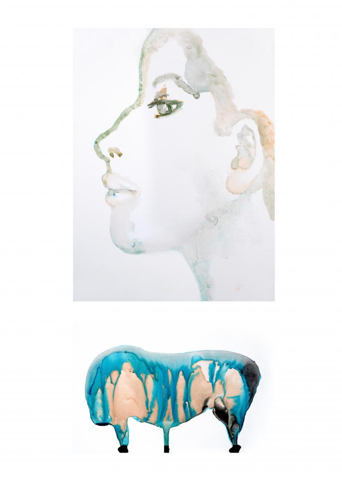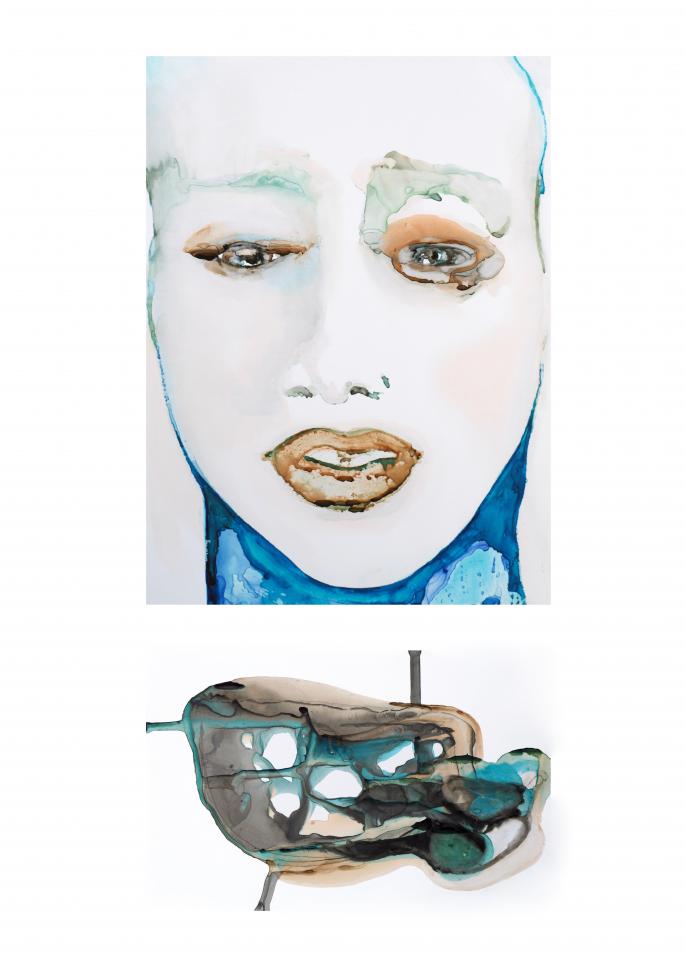 C’est cette partie inexistante qui me reste en mémoire, et qui donne accès à ce paysage hépatique, une ligne tendue mais souple, un filtre qui absorbe les humeurs et fait de la bile bleue une encre à dessein. Celui de recouvrer ces esprits autistes qui s’expriment par le ventre, par le corps, recouvrant de musc les méandres d’une beauté intérieure. Un paysage fatalement autarcique, un anneau de Möbius en catharsis refoulant ses résurgences jusqu’à tatouer le visage. »