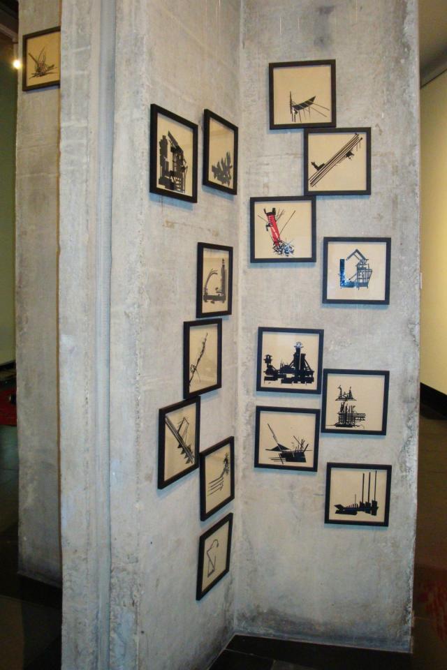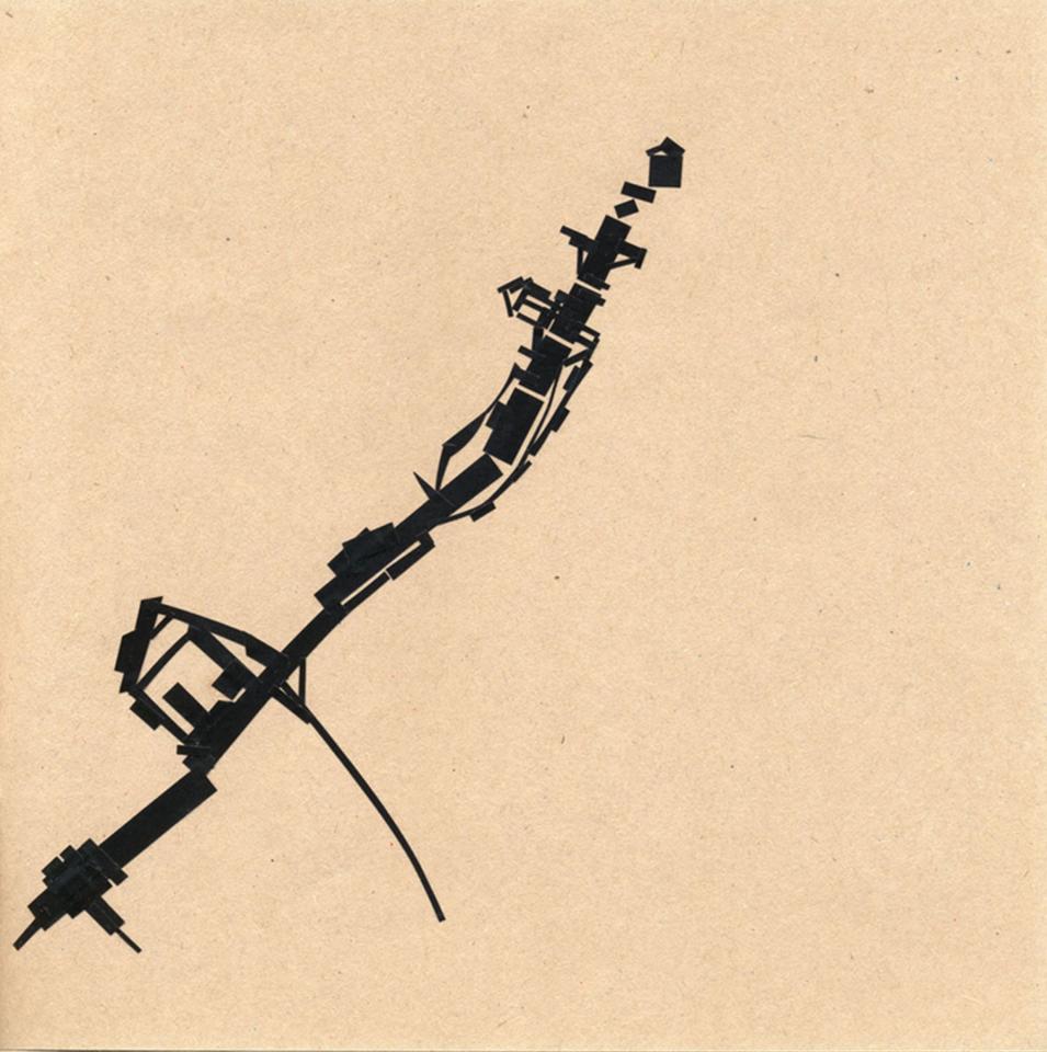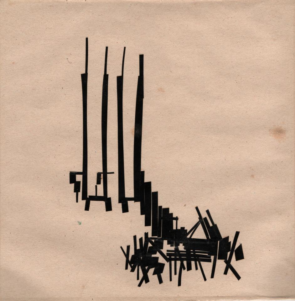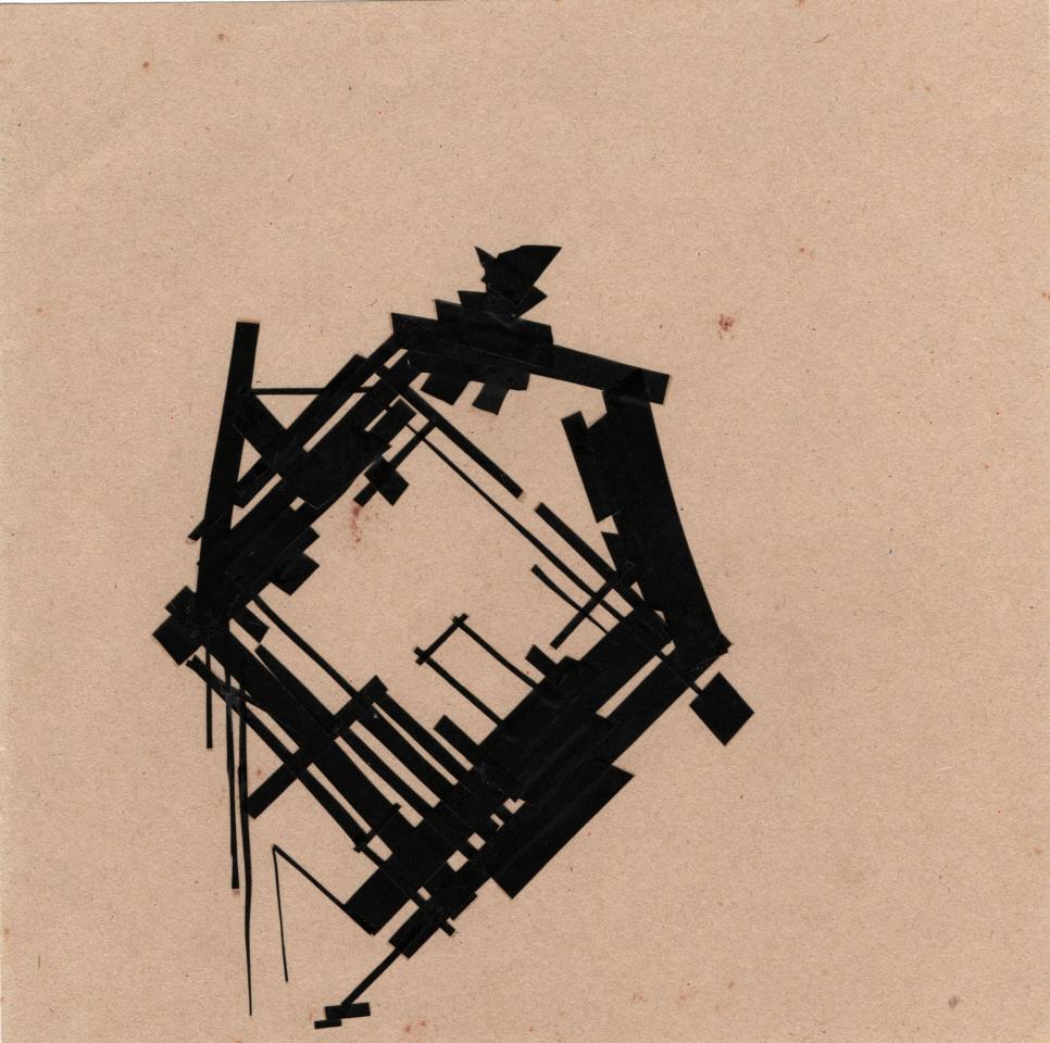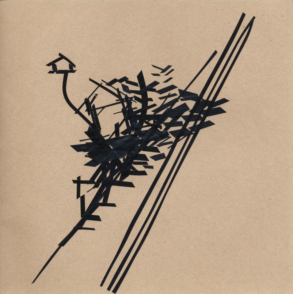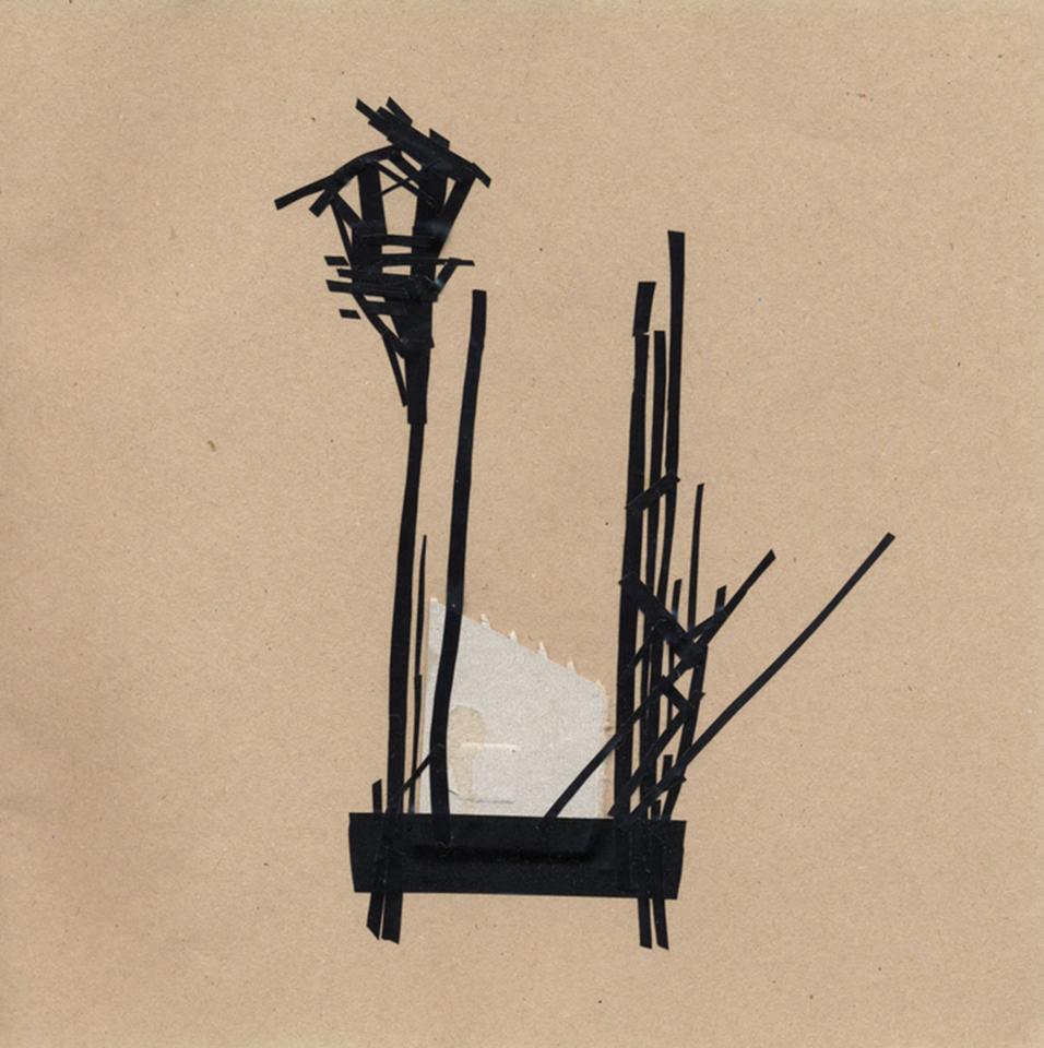 À l’origine, ce n’étaient que de petits collages ludiques d’architectures en scotch noir, réalisés dans un carnet de voyage en France, pendant que j’attendais le train ou sur des terrasses de café. Plus j’avançais dans le carnet, plus je me suis rendu compte que j’aimais travailler vite : adhésif, cutter, papier formaient le kit parfait pour montrer des architectures qui se construisent ou se détruisent, un peu comme un enfant qui colle des gommettes pour en faire une maison. On revient ainsi à la notion d’« habiter le monde », à l’idée de fabriquer sa cabane. Des années plus tard, à la Cité des Arts, j’ai réalisé un abri. Cette forme, cette thématique, elle est là depuis longtemps : elle va, elle vient, elle respire.