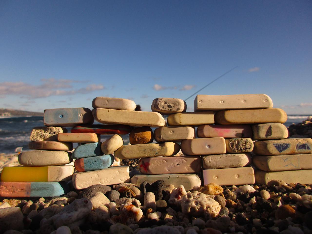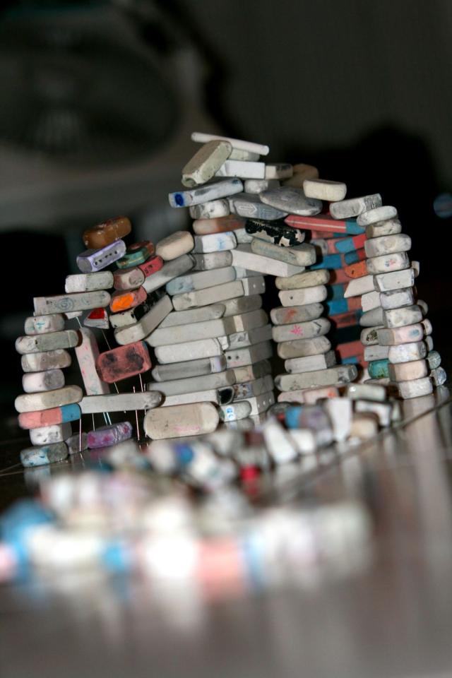 Installations in situ, gommes d’élèves, dimensions variables.