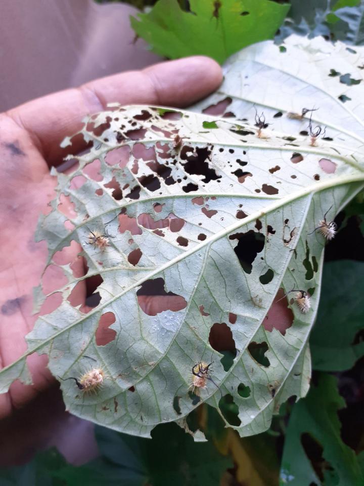 « (…) Inspirée par les discours d’Hubert Reeves ou de Gilles Clément, elle consacre dans son atelier un espace important au jardin pour penser davantage à la cohabitation entre les espèces. Dans ce lieu végétal, Tatiana Patchama collabore avec celles et ceux qu’elle appelle les “ ouvrier·e·s de l’ombre ” : les insectes, les arbres, les oiseaux, les margouillats, le vent, la pluie, la chaleur. Elle réalise des sculptures à partir de feuillages, pratique des techniques de couture sur du papier, pense à une dématérialisation complète de l’œuvre par la création sonore. Elle souhaite revenir vers des techniques ancestrales en travaillant le fil, la terre ou les pigments. “ Je me demande à quoi ressembleraient nos jardins sans escargots. Ou encore, ce que serait le monde si le silence venait à remplacer le chant des oiseaux. ” De par ses questionnements, ses inquiétudes et ses engagements, Tatiana Patchama adopte aujourd’hui une pensée écoféministe : “ La cause des femmes est celle de l’écologie et de la métamorphose d’un monde économique en une société antiéconomique ; cette cause est celle de l’espèce humaine tout entière, et non seulement de son avenir meilleur : de sa possibilité d’avoir encore un avenir1 ”. »