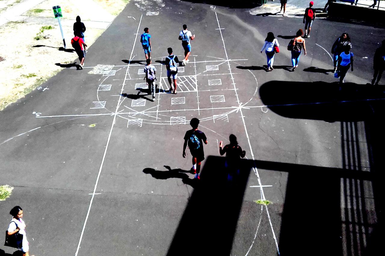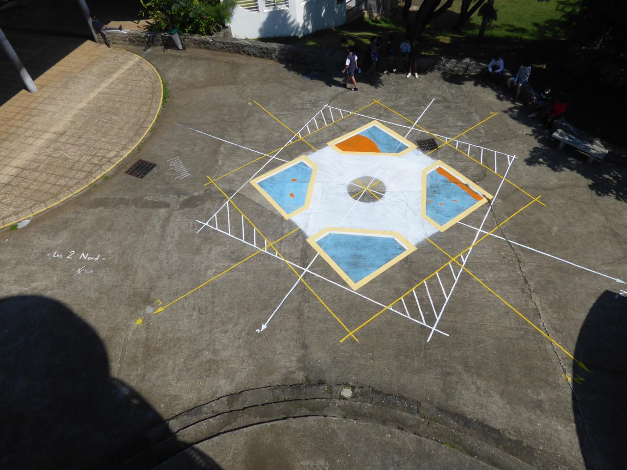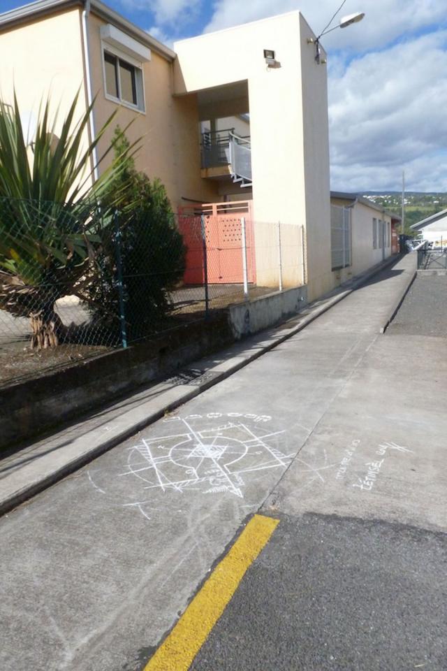 Tracé à la chaux, Lycée de Bois d’Olive, Saint-Pierre, La Réunion.